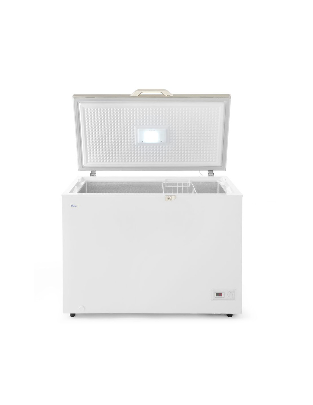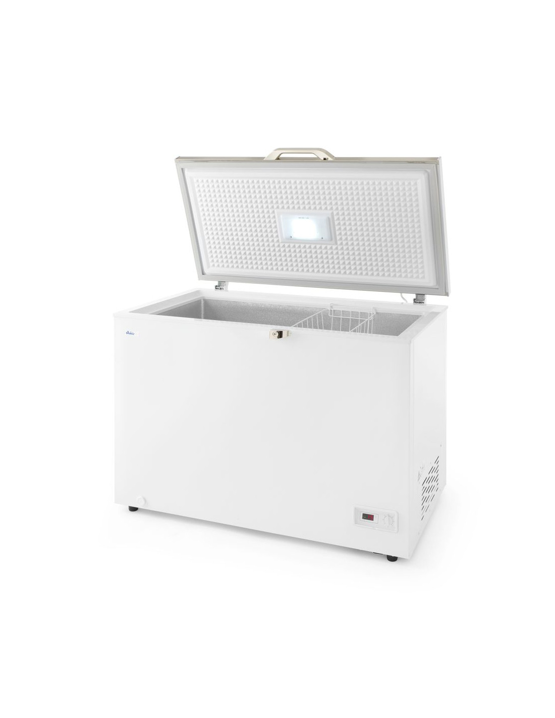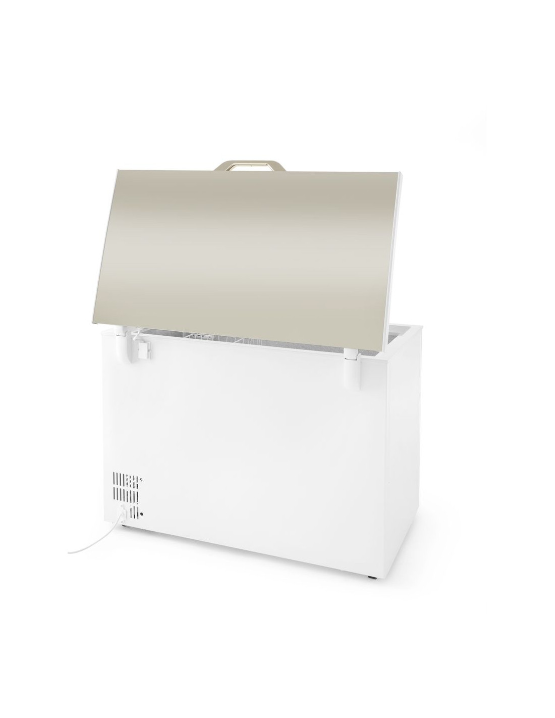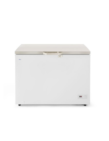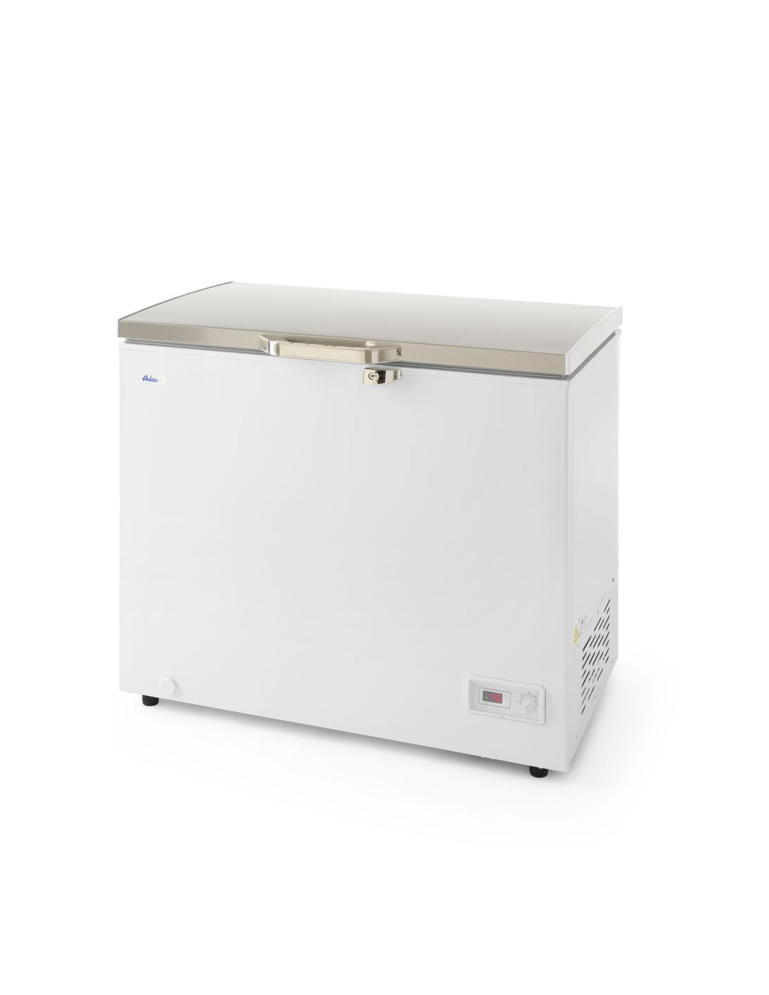 Hölje av aluminium. Dörren är tillverkad av förmålad stålplåt täckt med PVC-film. Med självstängande låsbart lock. Luftkylning med manuell avfrostning, kompressor placerad under kammaren. 70 mm tjock skumisolering. Ljusstark LED-belysning i kammaren. Digital temperaturdisplay och manuell kontroller. Utrustad med 2 hjul och 2 justerbara fötter, eller 6 hjul på större modeller. Temperaturområde: -18 °C till -26 °C.
