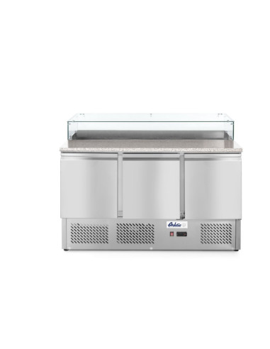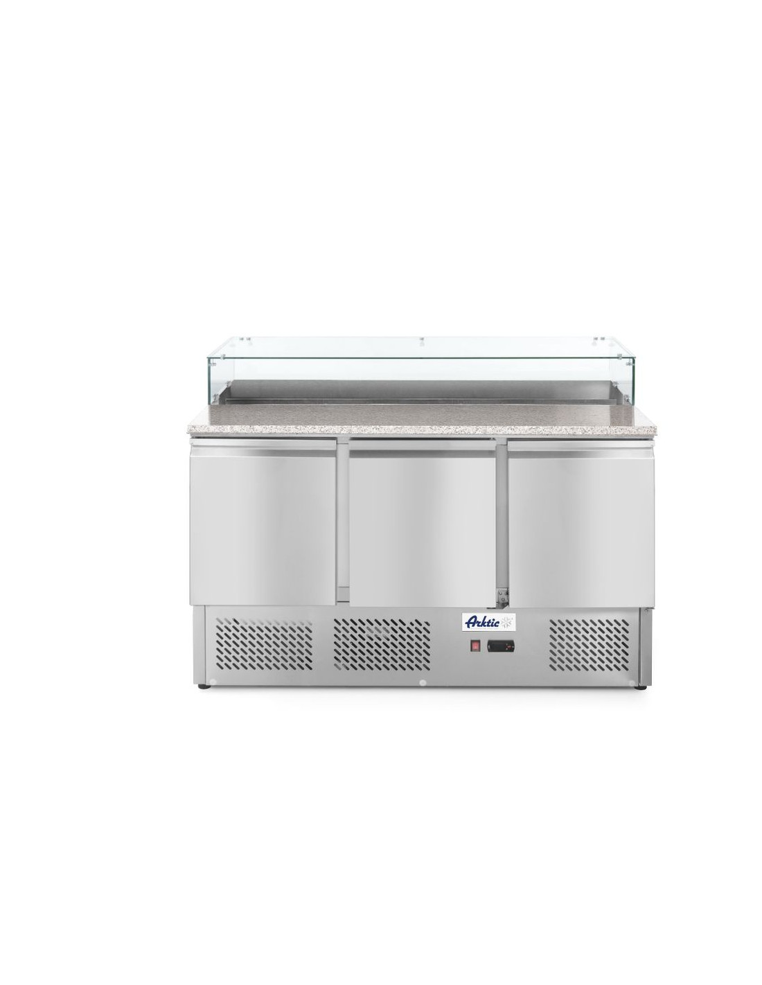 Inre och yttre hölje är tillverkade av högkvalitativt rostfritt stål, med granitbänkskiva. Dörrar försedda med bekväma handtag. Forcerad luftkylning med automatisk avfrostning, kompressor placerad under kammaren. Med justerbara hyllplan, passar behållare upp till GN 1/1. Digital display och elektronisk termostat. Med 4 justerbara halkfria plastfötter. 60 mm tjock polyuretanskumisolering. Klimatklass: SN-T. Kylvätska: R600a. Alla modeller levereras utan GN-behållare.