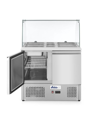 Salladsdisken kombinerar tillgängligheten hos en display med förvaringskapaciteten hos en kyldisk. Den stora glasdisplayen gör GN-behållarna mycket lättillgängliga.