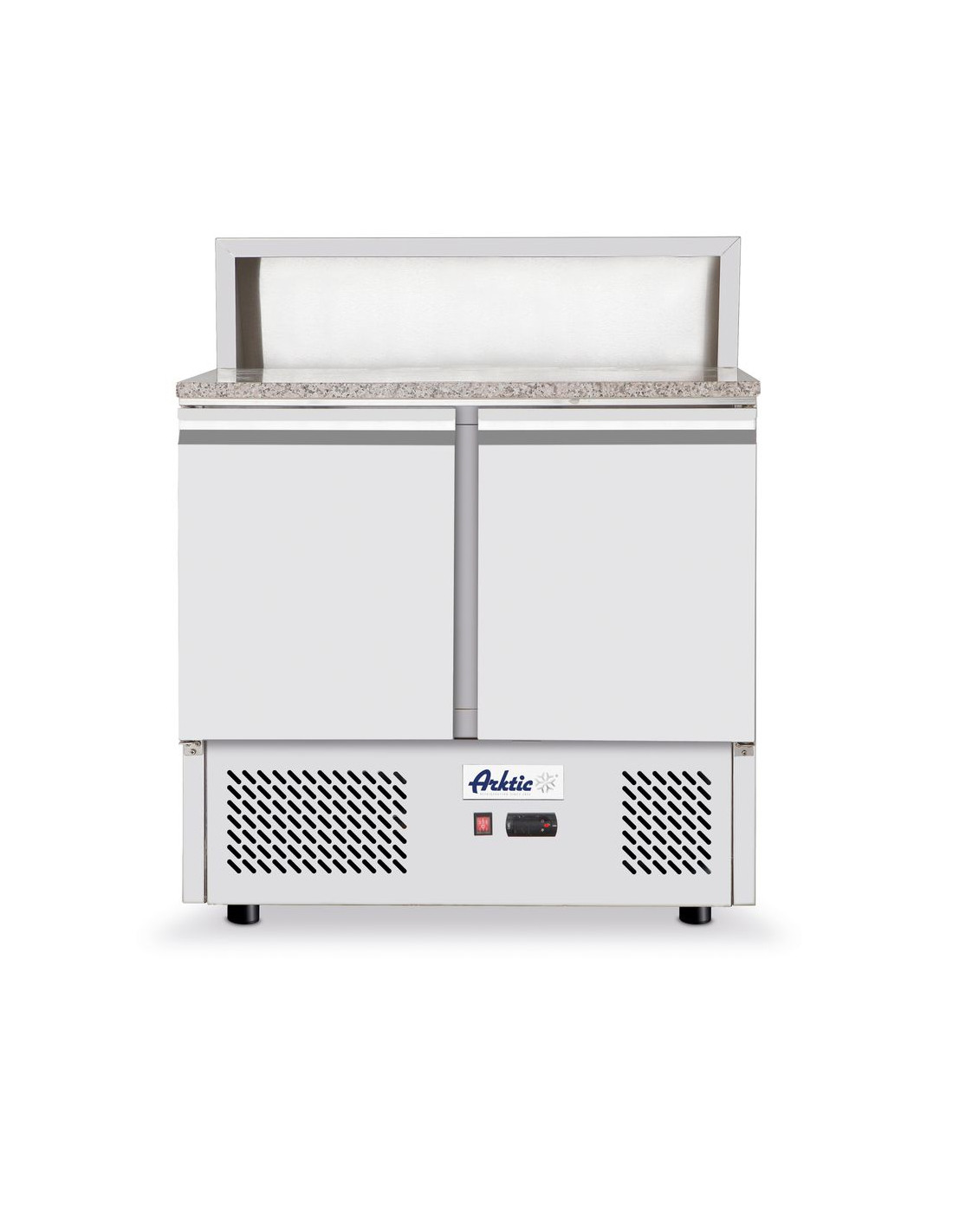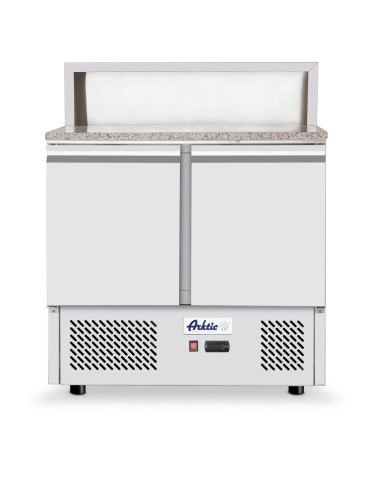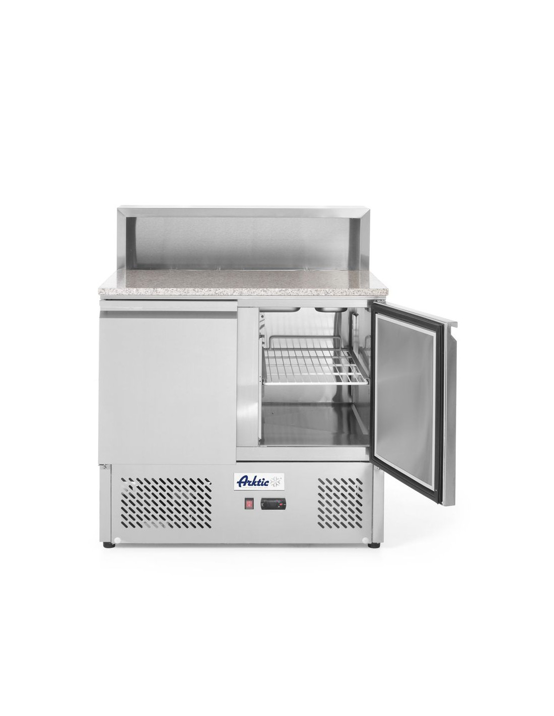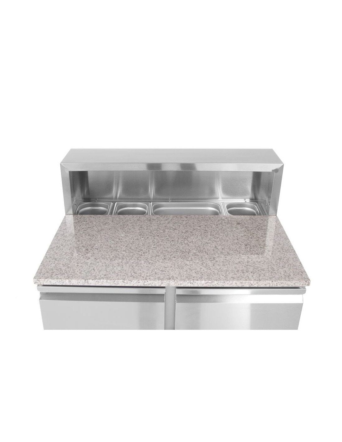 Inre och yttre hölje är tillverkade av högkvalitativt rostfritt stål, med granitbänkskiva. Dörrar försedda med bekväma handtag. Forcerad luftkylning med automatisk avfrostning, kompressor placerad under kammaren. Med justerbara hyllplan, passar behållare upp till GN 1/1. Digital display och elektronisk termostat. Med 4 justerbara halkfria plastfötter. 60 mm tjock polyuretanskumisolering. Klimatklass: SN-T. Kylvätska: R600a. Alla modeller levereras utan GN-behållare.