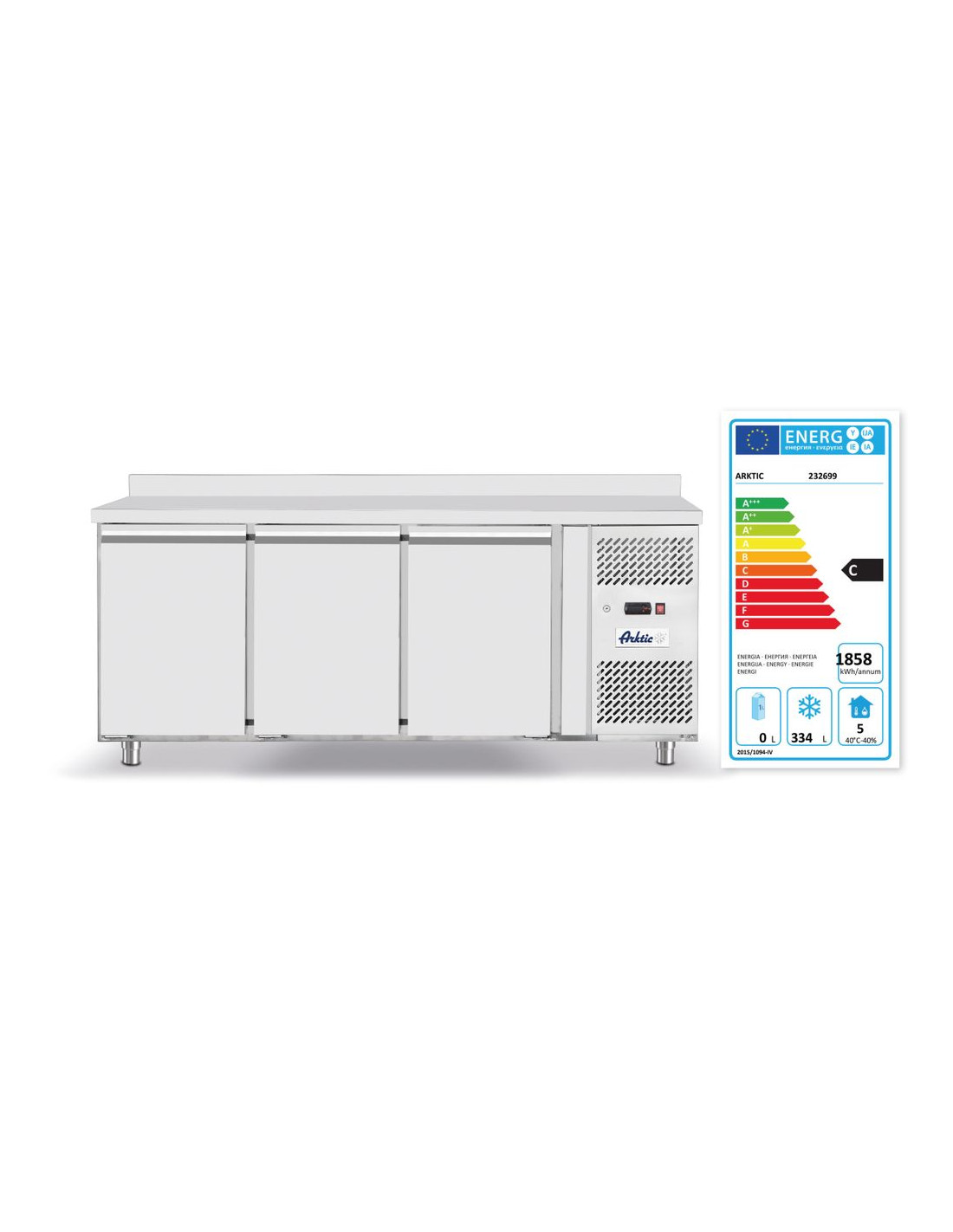 Inre och yttre hölje är tillverkade av högkvalitativt rostfritt stål, förutom det yttre bakre locket som är tillverkat av galvaniserat stål. Självstängande dörrar med bekväma handtag. Arbetsbänk med en 40 mm hög nock baktill (förutom 233764). Luftkylning med automatisk avfrostning, kompressor placerad bredvid kammaren. 50 mm tjock polyuretanskumisolering. Med justerbara hyllplan, passar behållare upp till GN 1/1. Digital display och elektronisk termostat. Med 4 justerbara fötter i rostfritt stål. Klimatklass: 5 (232040, 232057), 4 (232064, 232699).