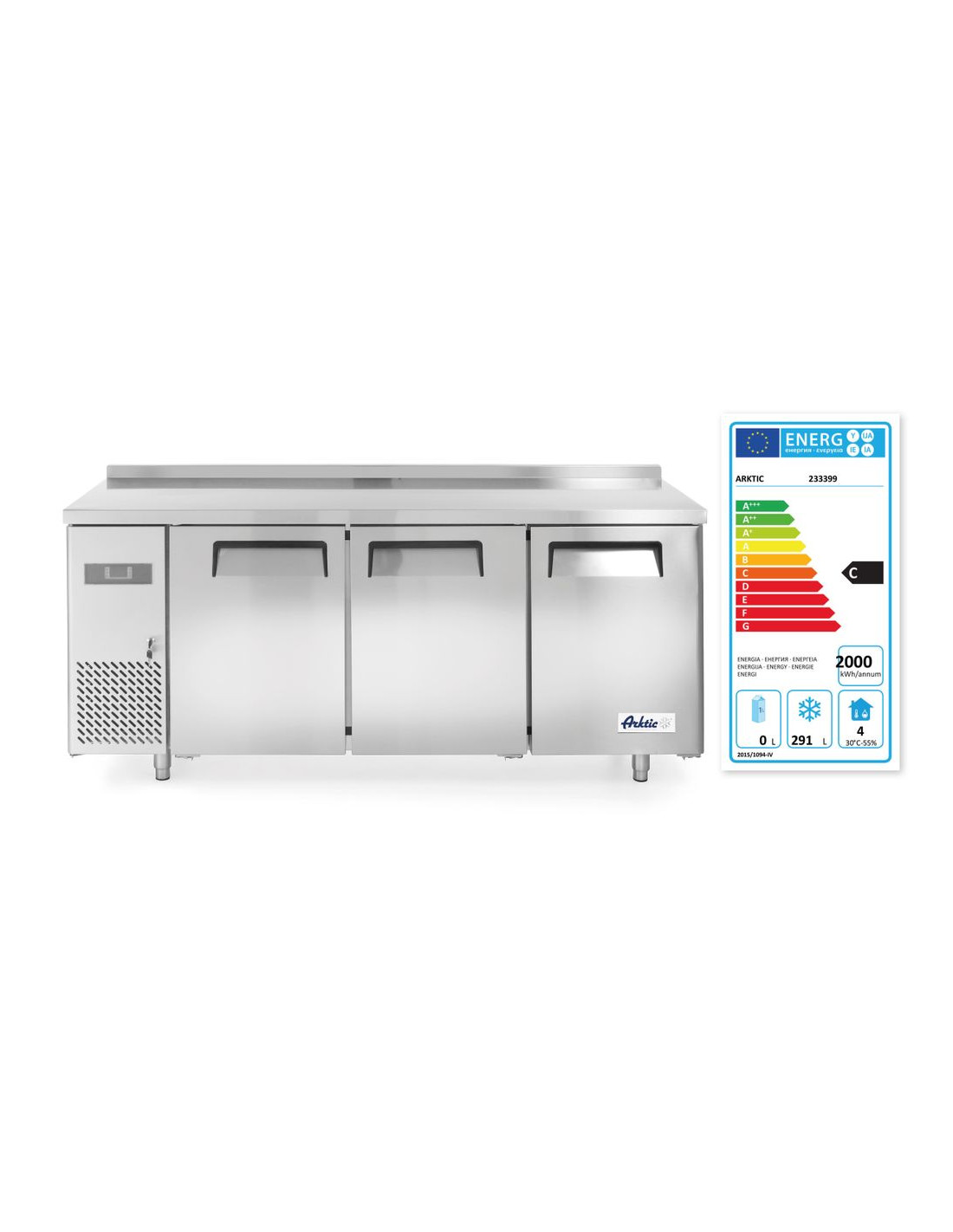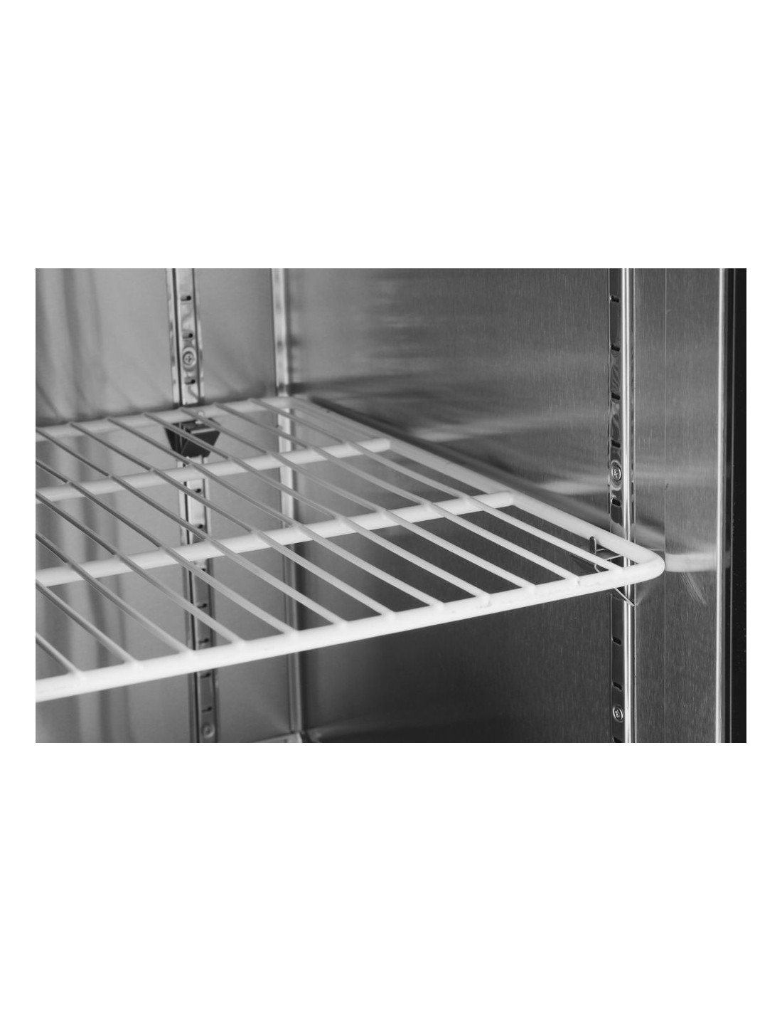 Inre och yttre hölje är tillverkade av högkvalitativt rostfritt stål. Självstängande dörrar med bekväma handtag. Arbetsbänk med en 40 mm hög nock baktill. Statisk kylning med intern fläkt och pollenfilter. Forcerad luftkylning med automatisk avfrostning, kompressor placerad under kammaren. 50 mm tjock polyuretanskumisolering. Med justerbara hyllplan. Digital display och elektronisk termostat. Med 4 justerbara fötter i rostfritt stål. Klimatklass: 5 (233344, 233382), 4 (233351, 233399). Kylvätska: R600a (233344, 233382), R290 (233351, 233399).