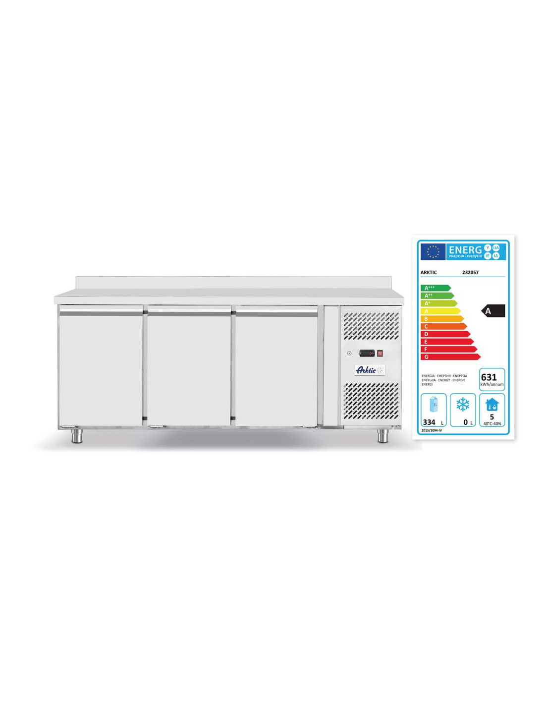 Inre och yttre hölje är tillverkade av högkvalitativt rostfritt stål, förutom det yttre bakre locket som är tillverkat av galvaniserat stål. Självstängande dörrar med bekväma handtag. Arbetsbänk med en 40 mm hög nock baktill (förutom 233764). Luftkylning med automatisk avfrostning, kompressor placerad bredvid kammaren. 50 mm tjock polyuretanskumisolering. Med justerbara hyllplan, passar behållare upp till GN 1/1. Digital display och elektronisk termostat. Med 4 justerbara fötter i rostfritt stål. Klimatklass: 5 (232040, 232057), 4 (232064, 232699).