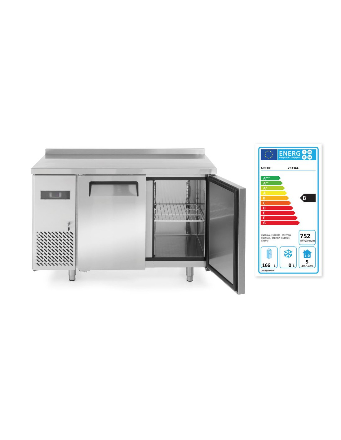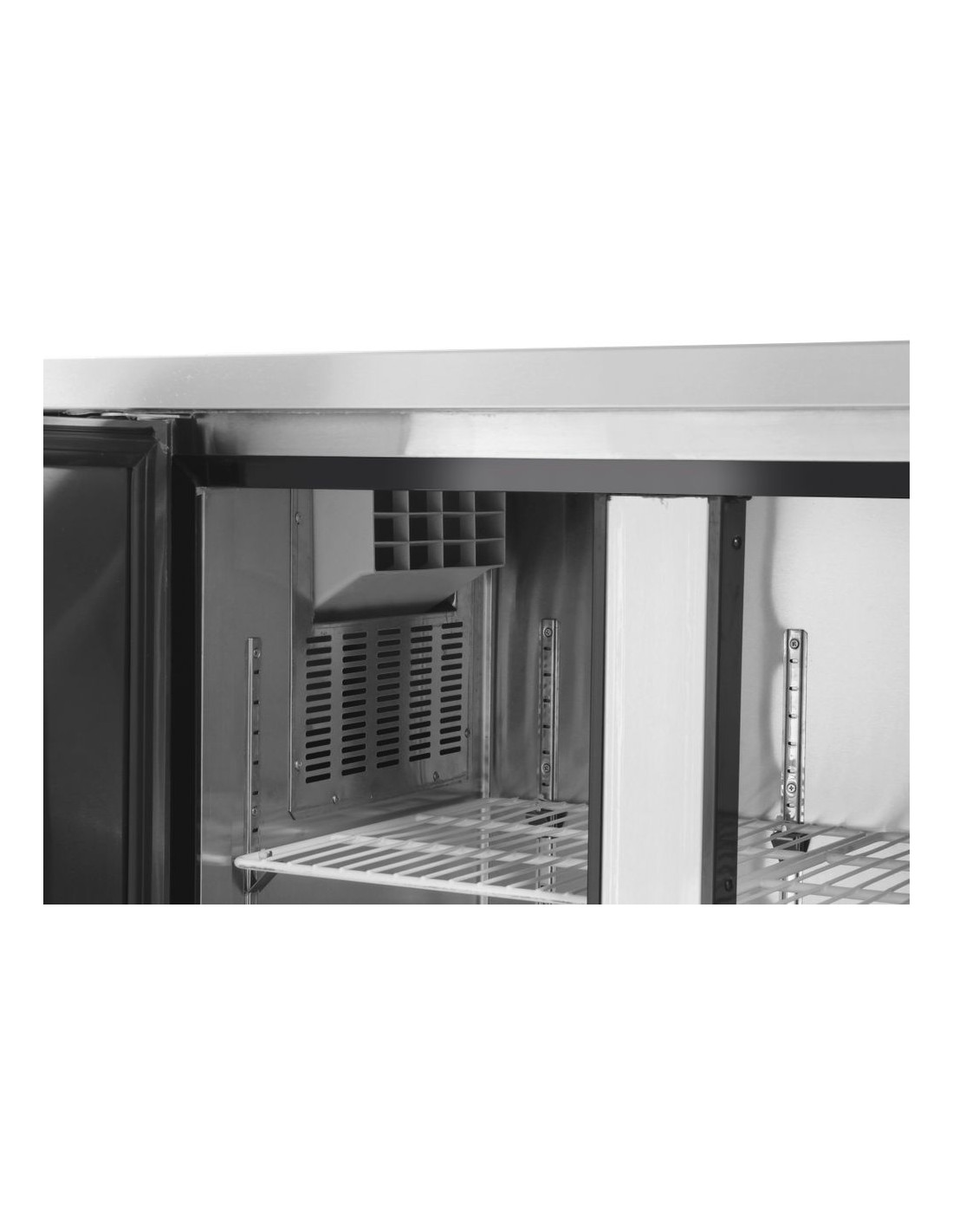 Inre och yttre hölje är tillverkade av högkvalitativt rostfritt stål. Självstängande dörrar med bekväma handtag. Arbetsbänk med en 40 mm hög nock baktill. Statisk kylning med intern fläkt och pollenfilter. Forcerad luftkylning med automatisk avfrostning, kompressor placerad under kammaren. 50 mm tjock polyuretanskumisolering. Med justerbara hyllplan. Digital display och elektronisk termostat. Med 4 justerbara fötter i rostfritt stål. Klimatklass: 5 (233344, 233382), 4 (233351, 233399). Kylvätska: R600a (233344, 233382), R290 (233351, 233399).