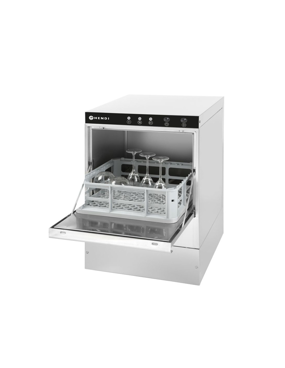 Mycket enkel att använda, rengöra, underhålla och även servicera. Perfekt för diskning av muggar, koppar, glas, bestick och tallrikar. Elektromekaniska kontroller. Hölje tillverkat av rostfritt stål AISI 304. Separata spolarmar i rostfritt stål för diskning och sköljning. Solid dubbeldörr. Antal/tid för diskcykler: 1/120 s. Kapacitet: upp till 30 korgar/timme. Vattenförbrukning per cykel: 2-2,5 l (beroende på vattentryck). Diskvattentemperatur: 62 °C, sköljvattentemperatur: 85 °C. Varmvattenberedare (kapacitet/effekt): 3,5 l/2,5 kW. Tank (kapacitet/effekt): 17 l/2,5 kW. Pumpeffekt: 0,1 hk. Säkerhetstermostat för varmvattenberedare/för tank upp till 105 °C/99 °C. Skyddsklass IP44. Vikt 39 kg. UTRUSTNING: - 1x universalkorg 400x400x(H)150 mm för glas - 1x korg med stift 400x400x(H)110 mm för tallrikar - 1x bestickkorg 110x110x(H)130 mm - vattenslangens längd 1,5 m med anslutning 3/4” innergänga - avloppsslangens längd 2 m × 25 mm - nätsladd utan kontakt - sköljmedelsfack Förberedd för installation av diskmedelspump (skruvas fast i tankens bakvägg). Vertikalt justerbara ben: × 10 mm, × 40 mm.