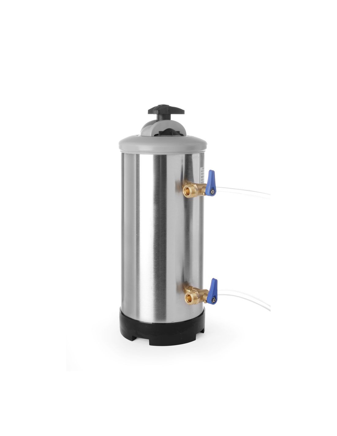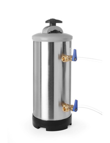Hårt vatten innehåller upplösta mineraler – bland annat kalcium- och magnesiumföreningar. Kalcium- och magnesiumjoner orsakar kalkavlagringar, vilket är riskabelt för föremål och verktyg i kontakt med vatten eller ånga. Vattenavhärdning är en process där alla kalcium- och magnesiumföreningar som orsakar vattenhårdhet avlägsnas. När kalcium- och magnesiumjoner passerar genom hartspelaren absorberas de av hartspartiklarna. När hartsets jonbytesförmåga försämras bör den återställas i en lämplig regenereringsprocess med hjälp av en saltlösning. Vattenavhärdare kan installeras där vattentemperaturen är under 45 °C och vattentrycket inte överstiger 2 bar. Regenerering: endast ojoderat salt. Endast för dricksvatten. Lämplig för avhärdning av vatten för kaffebryggare, ångkokare, diskmaskiner och ismaskiner. Tack vare sin lilla storlek är den perfekt för barer och restauranger. Tack vare komponenter av högsta kvalitet som används förblir enheten felsäker och funktionsduglig i många år. Optimalt arbetsvattentryck: 1-2 bar.