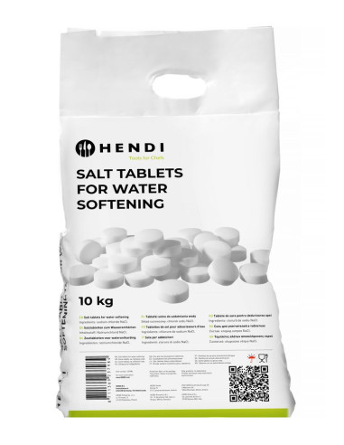 HENDI salttabletter för vattenavhärdning är supereffektiva för att avhärda vatten och även desinficera det. Att använda salt i vattenavhärdare förlänger livslängden på alla vattenförbrukande apparater genom att förhindra uppbyggnad av kalkavlagringar och andra vattenrester. Salttabletterna kan tjäna flera syften, förutom att skydda livsmedelsutrustning (till exempel kaffebryggare eller diskmaskiner) används de även i biltvättar, vattenverk eller simbassänger.
