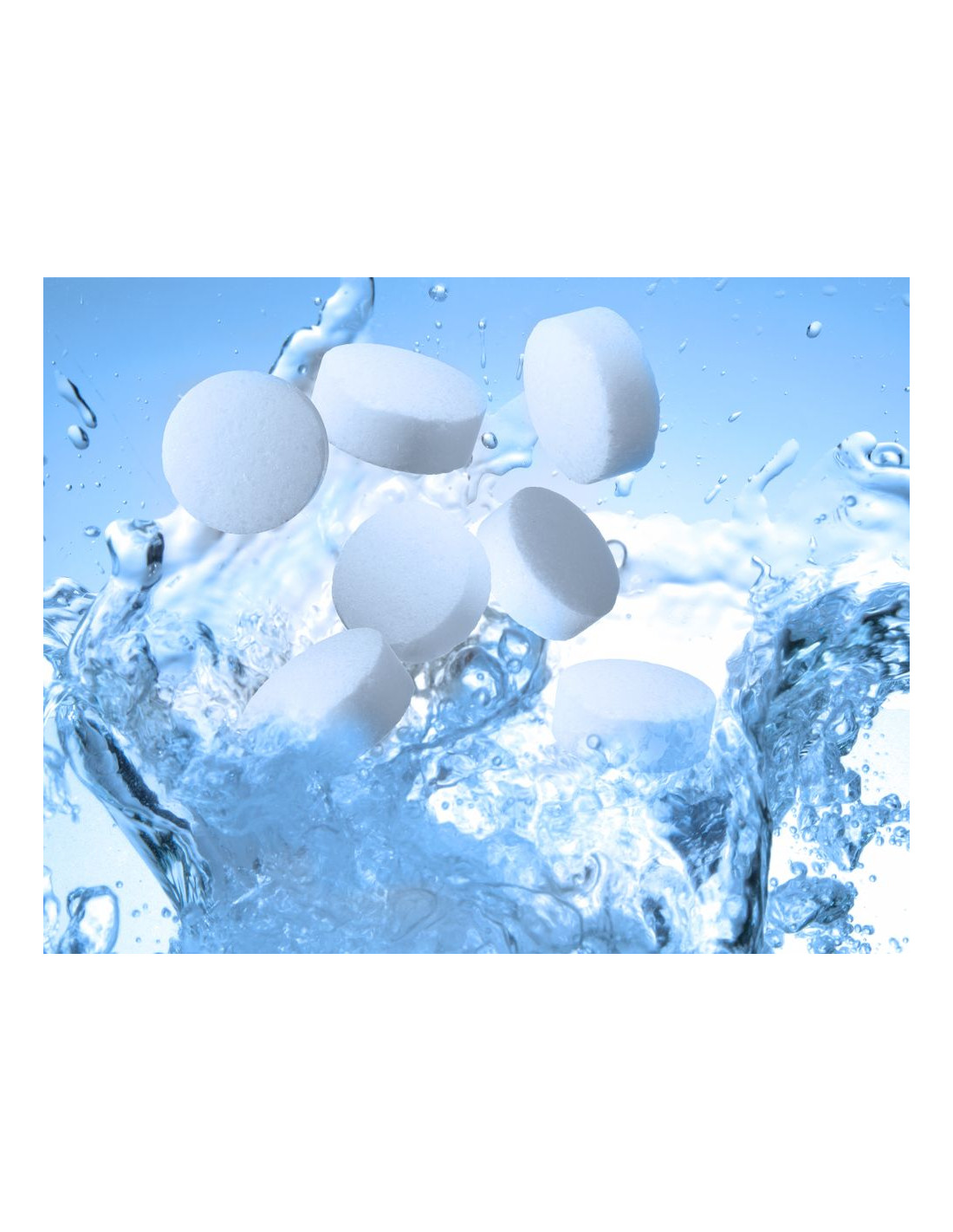 Tillverkad av komprimerat salt – råmaterialet är endast natriumklorid NaCl. Tablettform – saltet löses upp jämnt utan att klumpa ihop. Avsedd för: Mjukgöring av vatten och förebyggande av kalkavlagringar. Vattendesinfektion. Förlängning av apparaters livslängd. Utmärkt för livsmedelsservice, biltvättar, vattenanläggningar och många andra ändamål. Kan användas i alla typer av vattenavhärdare. Salttabletter uppfyller standarden EN 973 – Typ A.
