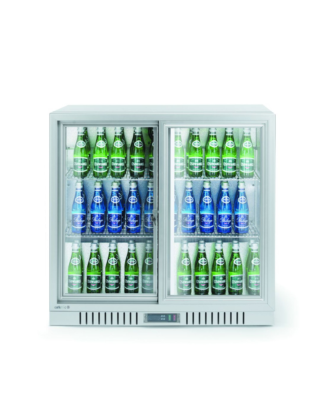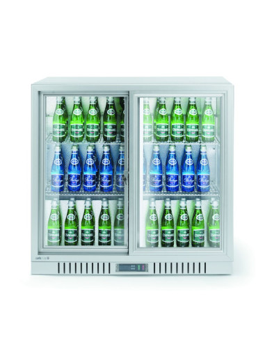HENDI Back barkylskåp med två skjutdörrar håller dryckerna kylda och redo att serveras med effektiv ventilerad kylning. Med LED-belysning, dörrar i härdat glas och en digital display kombinerar den pålitlig prestanda med en elegant presentation för alla bar- eller cateringmiljöer.