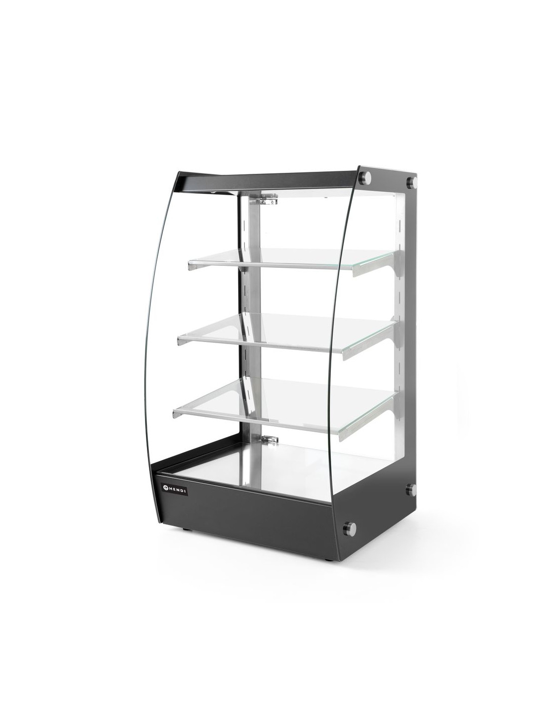 HENDI Open multi-shelf display 75L är en elegant enhet med 3 justerbara, lätt lutande glashyllor för förbättrad produktåtkomst. Den är väl lämpad för bensinstationer, små butiker, kontorskök och matsalar, och erbjuder ett praktiskt sätt att presentera självbetjäningsmatvaror som inte kräver kylförvaring. Med slitstarkt hölje i rostfritt stål, härdat säkerhetsglas och LED-belysning förbättrar den produktsynligheten.