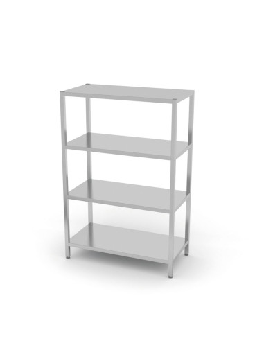 Tillverkad av rostfritt stål AISI 430. Ben av 30x30 mm profiler. Ungefärlig tillåten hyllbelastning: 70 kg/m². Justerbara fötter i intervallet: +25/-5 mm.