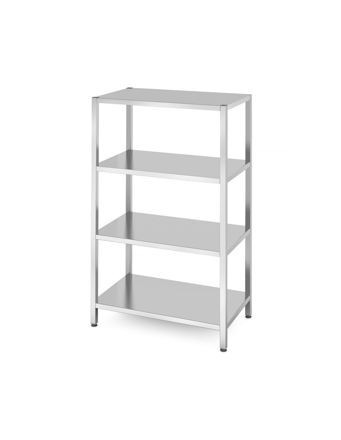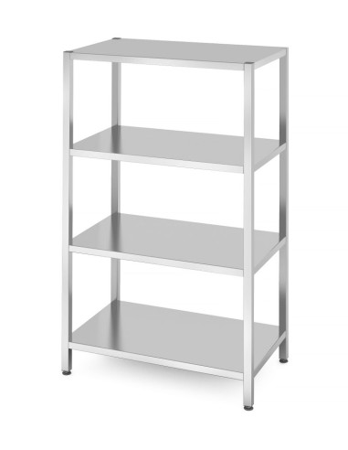 Tillverkad av rostfritt stål AISI 430. Ben av 30x30 mm profiler. Ungefärlig tillåten hyllbelastning: 70 kg/m². Justerbara fötter i intervallet: +25/-5 mm.