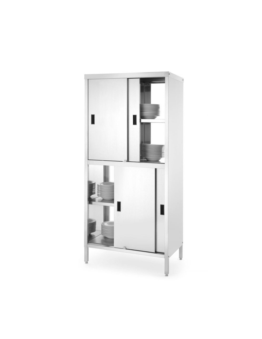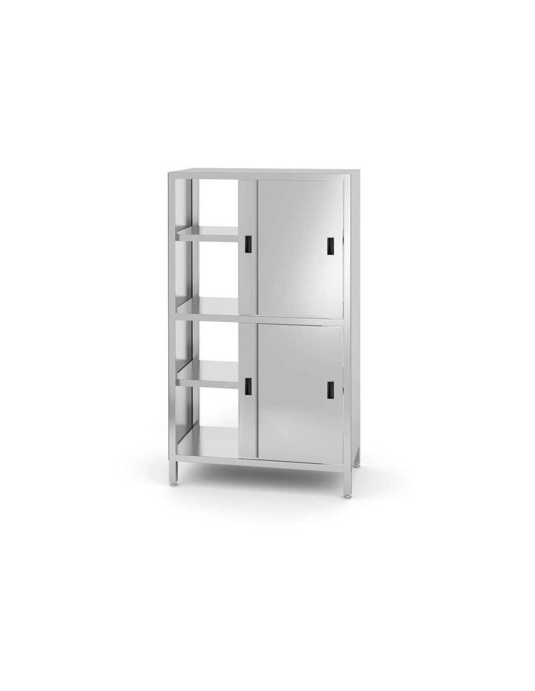 Genomgångsskåp med skiljevägg och skjutdörrar – bultade, hendi, kitchen line, 800x500x(h)1800mm