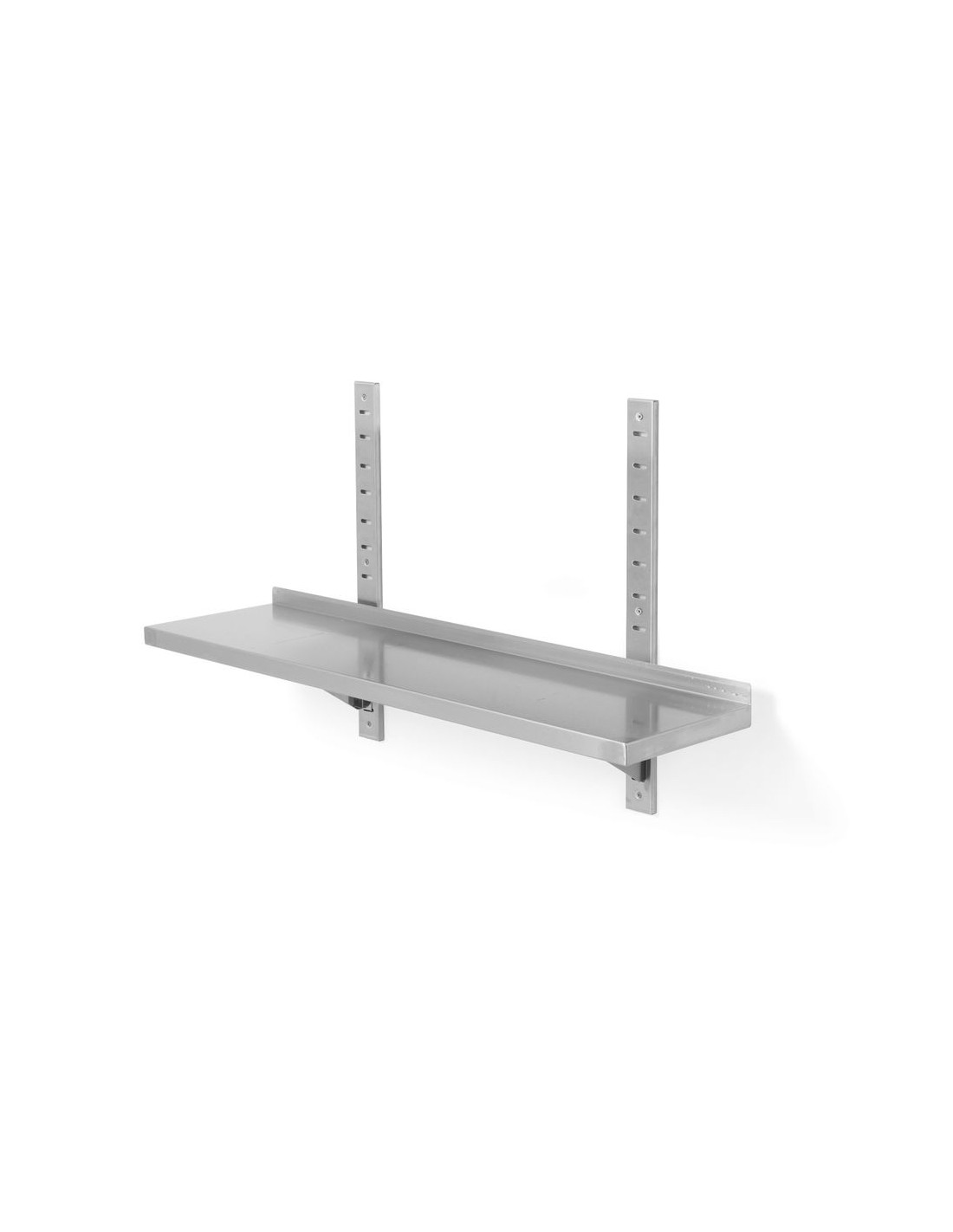 Den justerbara vägghyllan HENDI – enkel med 2 konsoler har en lättrengörlig design med 30 mm stänkskydd och inkluderar 2 monteringsfästen. Hyllan kan demonteras vid behov, vilket ger flexibilitet vid installation eller flytt. Med en lastkapacitet på ca 25 kg/m² är den idealisk för att hålla köksförnödenheter inom räckhåll samtidigt som den bibehåller en snygg arbetsyta.