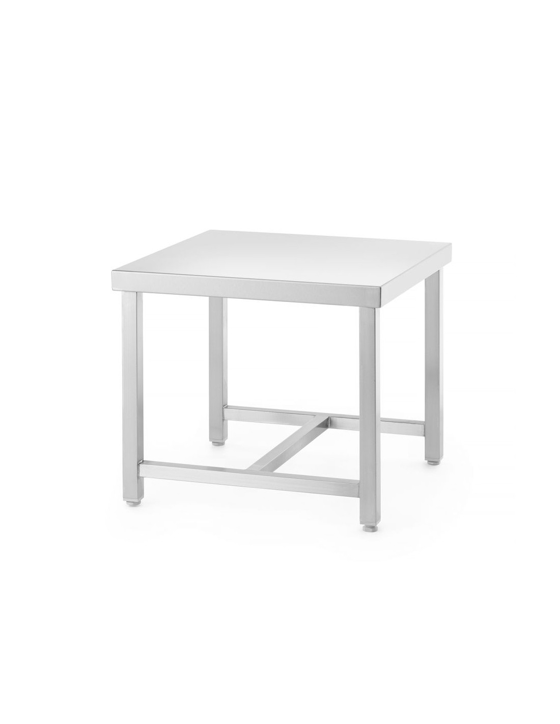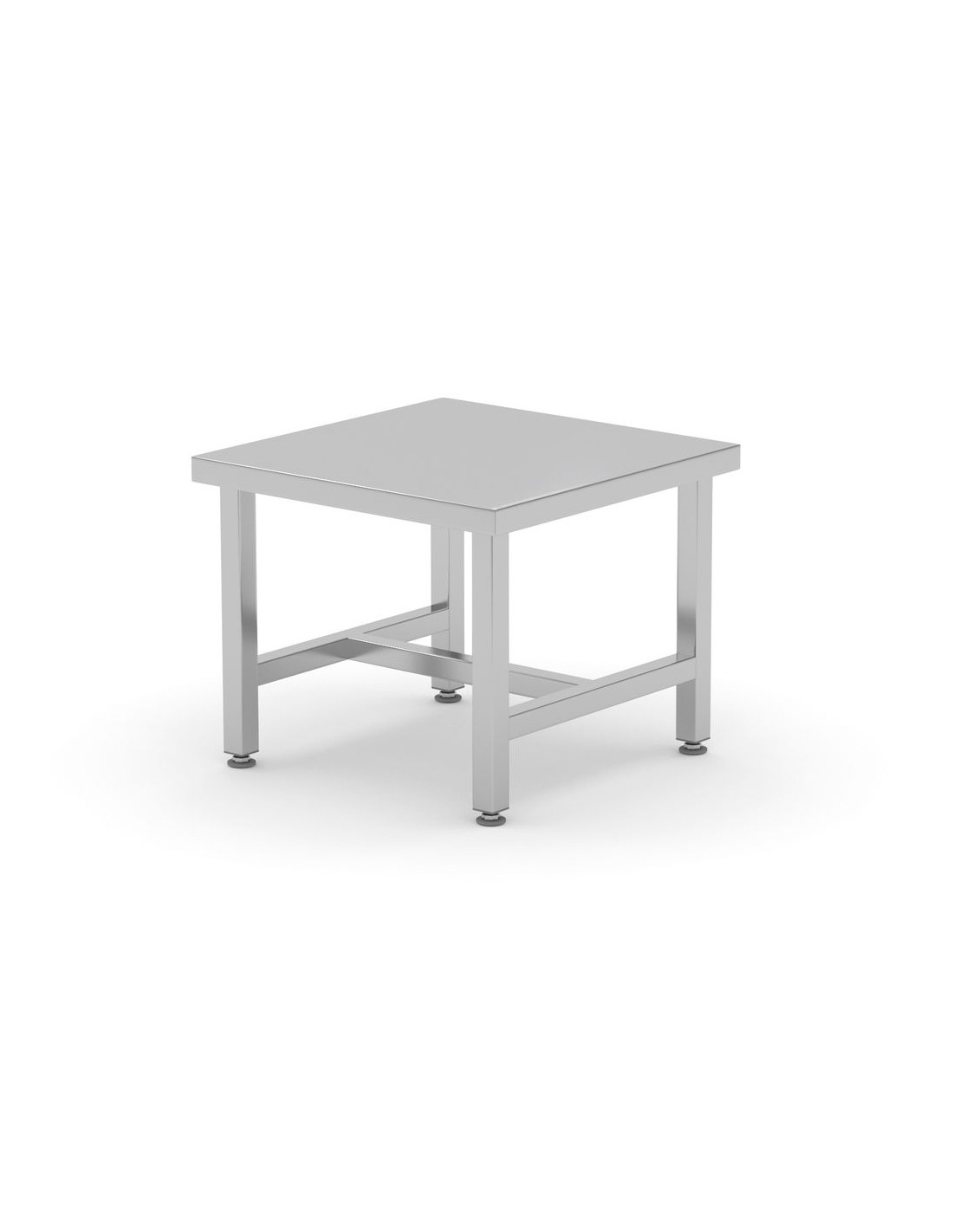 Tillverkad av rostfritt stål. Svetsad konstruktion som säkerställer hållbarhet och stabilitet. Bordsskivan är förstärkt i botten med en stålprofil. Ungefärlig tillåten jämn belastning på bänkskivan: 70 kg/m². Ben tillverkade av 30x30 mm profiler. Justerbara fötter: +25/⁻⁴ mm.