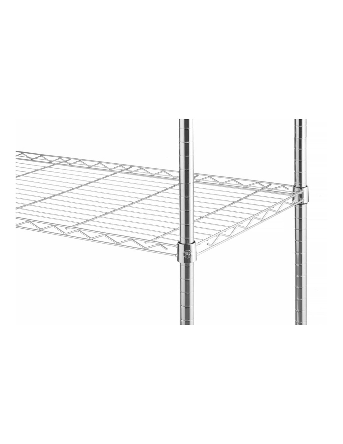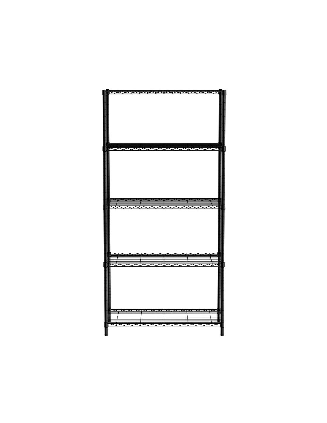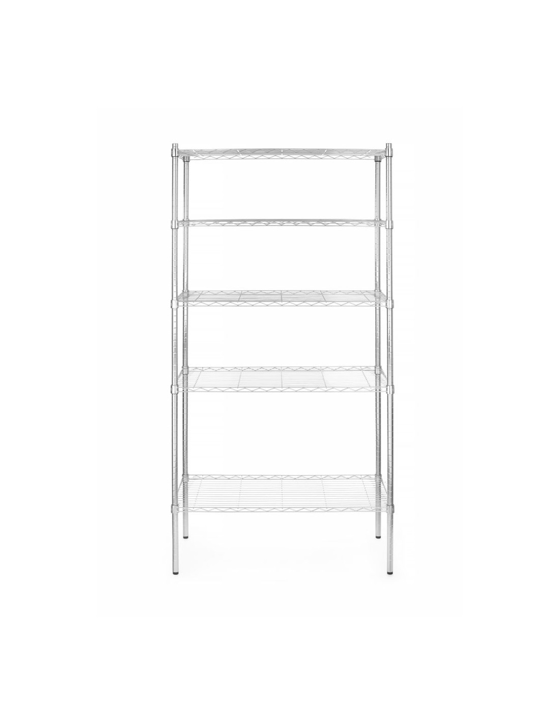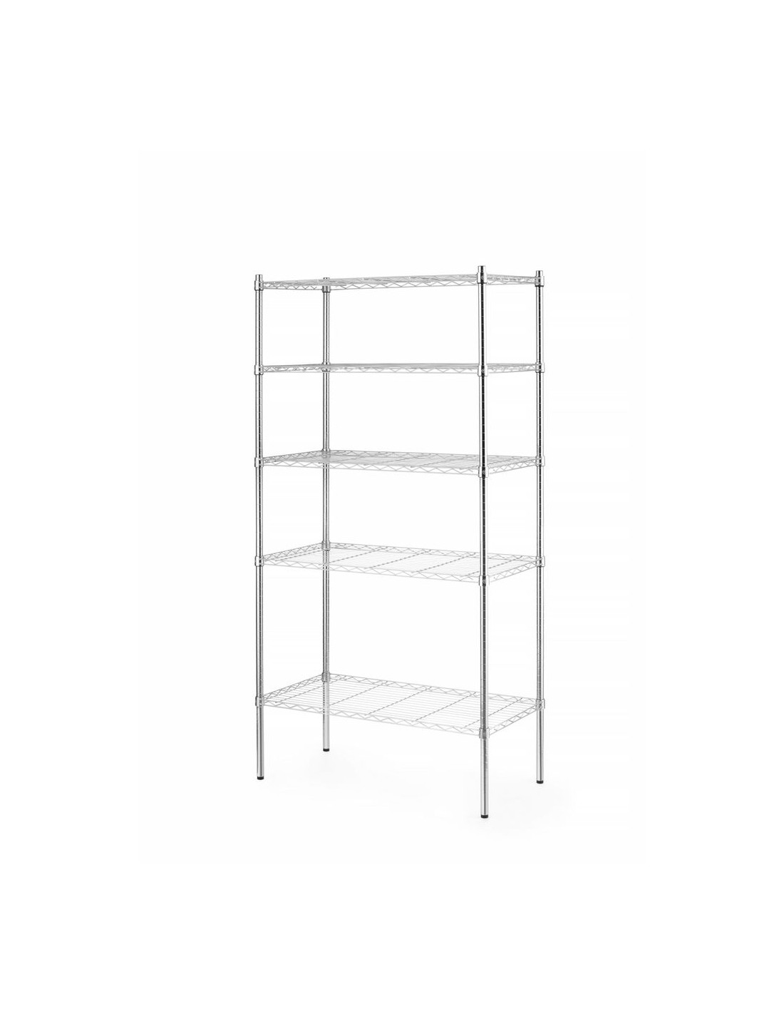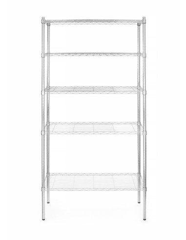 Tillverkad av stål. Finns i förkromad eller svart pulverlackerad yta. Lätt att montera, hyllhöjden är enkel att justera. Inkluderar 5 trådhyllor. Bred lastkapacitet per hyllplan: 80 kg. Utrustad med justerbara fötter.