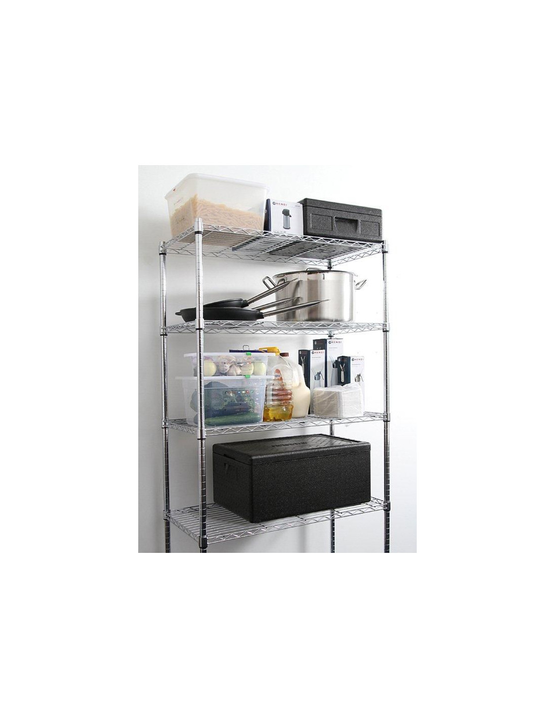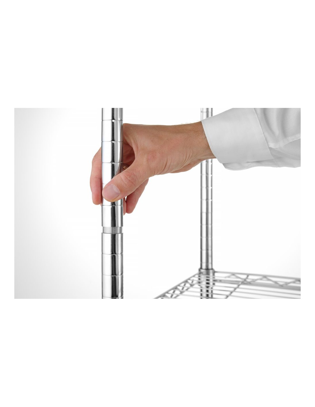 HENDI förvaringsställ med 5 hyllor är en mångsidig och hållbar förvaringslösning tillverkad av högkvalitativt stål, tillgänglig i antingen förkromad eller svart pulverlackerad finish för att passa olika miljöer. Lätt men ändå stark, varje hylla stöder upp till 80 kg, vilket gör den idealisk för förvaring av förnödenheter, utrustning eller inventarier. Lätt att montera, med justerbara hyllhöjder och fötter för stabilitet.