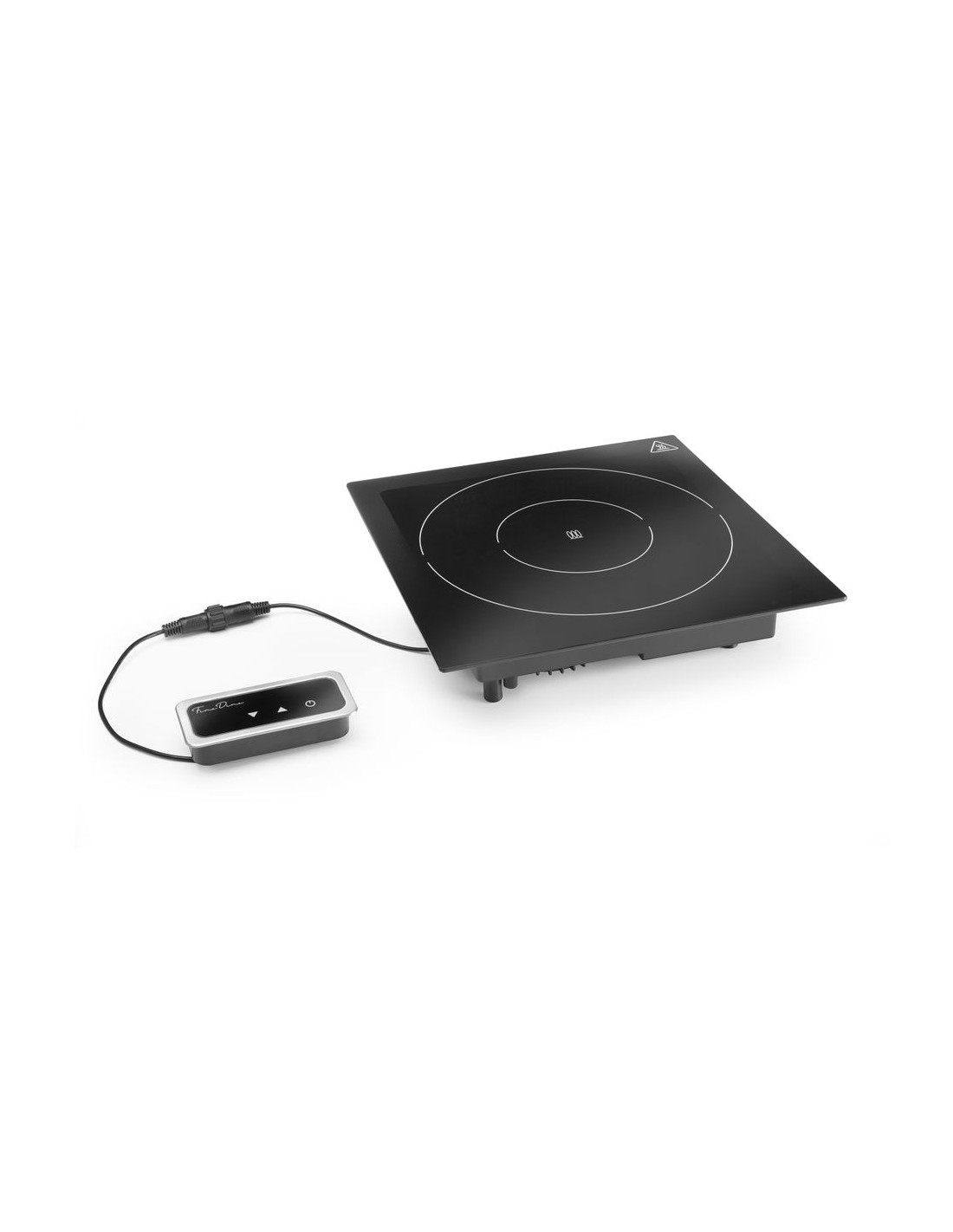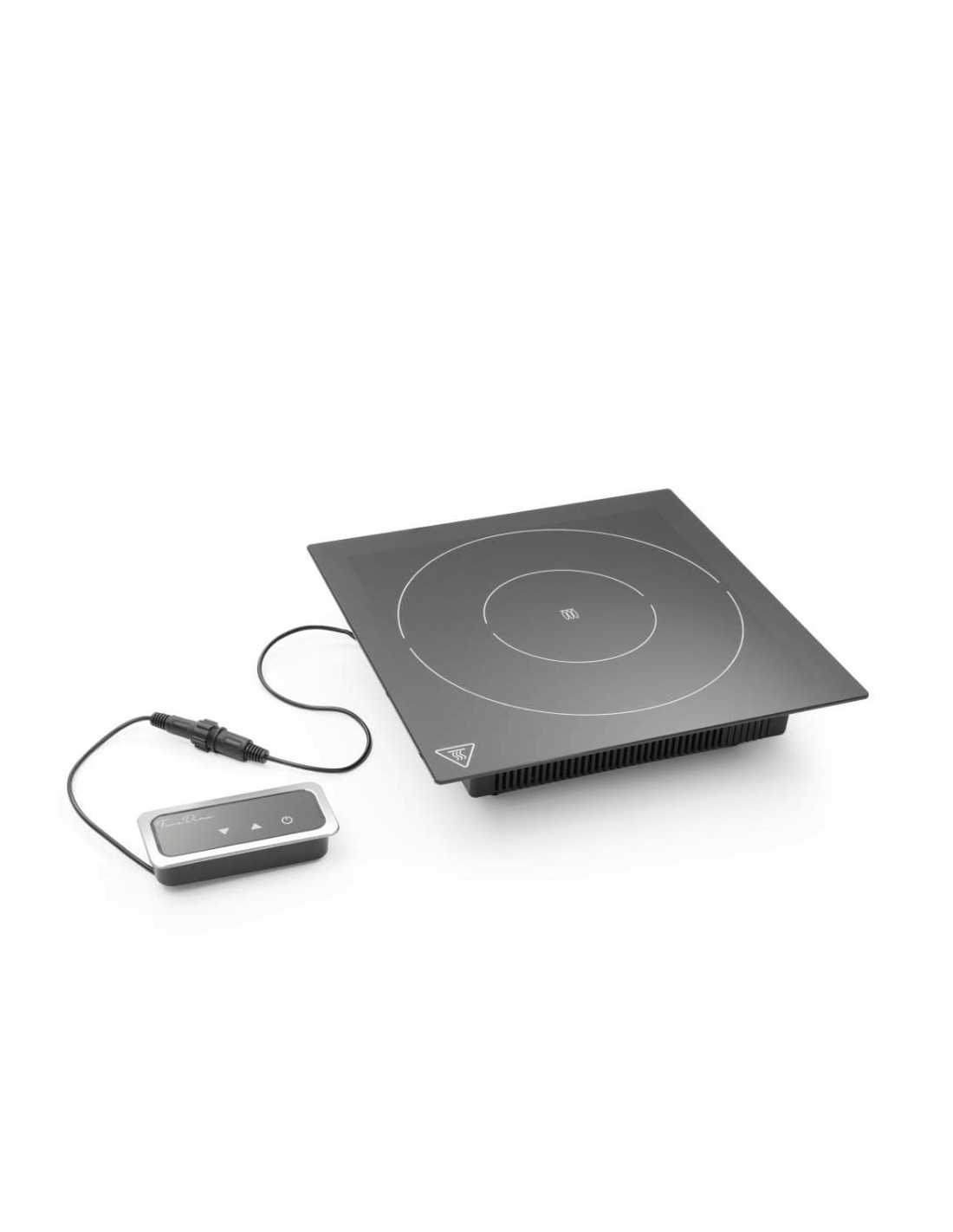 Värmeyta av svart kristallglas. Plasthölje. Induktionsvärmare för installation på bänkskiva. 10-stegs effektjustering. Utrustad med elektroniskt överhettningsskydd. Pekskärm och LED-display. Maximal tillåten belastning för spisen: 15 kg. Lämplig för grytor och stekpannor med bottendiameter på 120-200 mm.