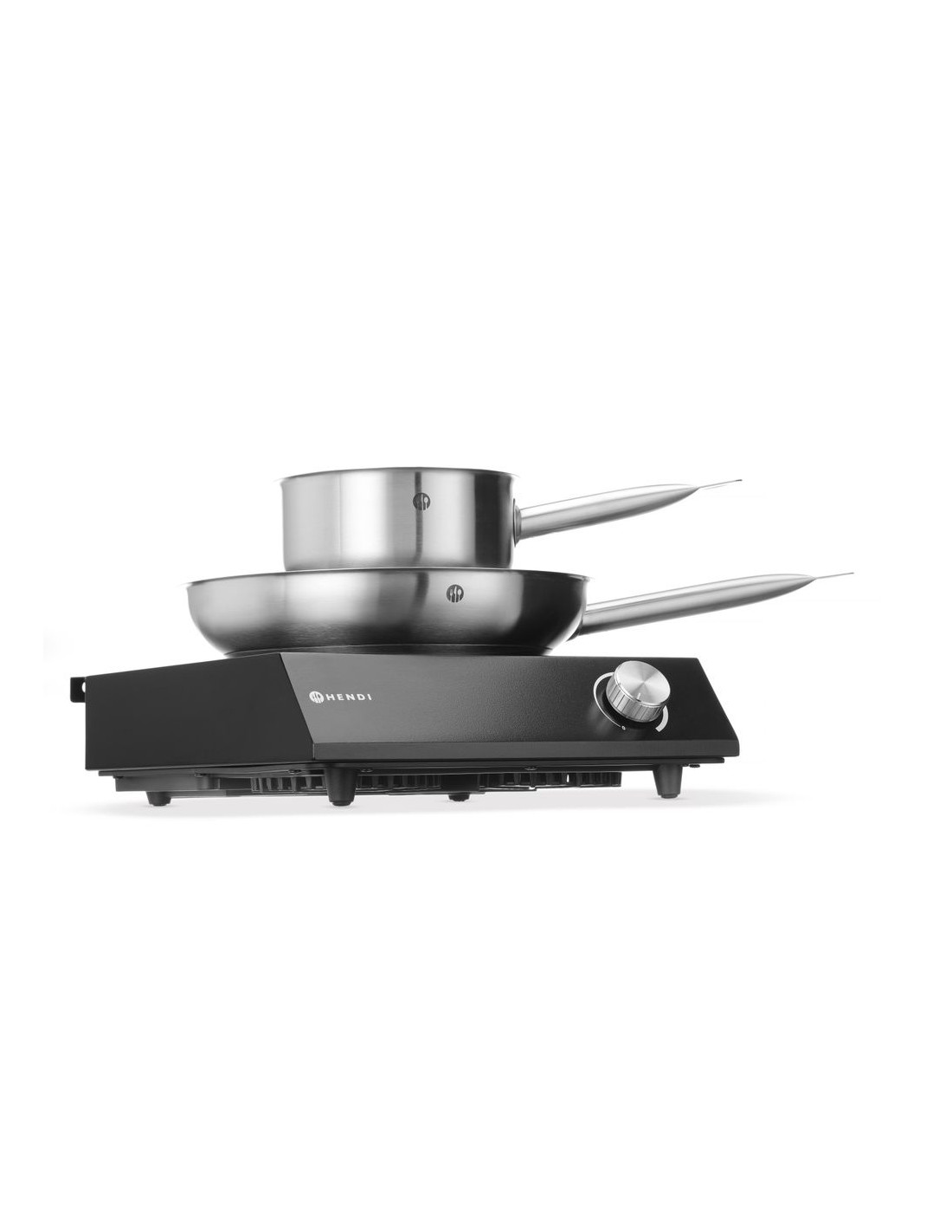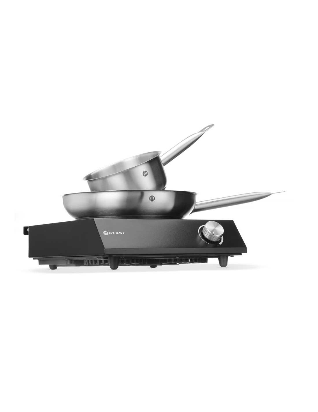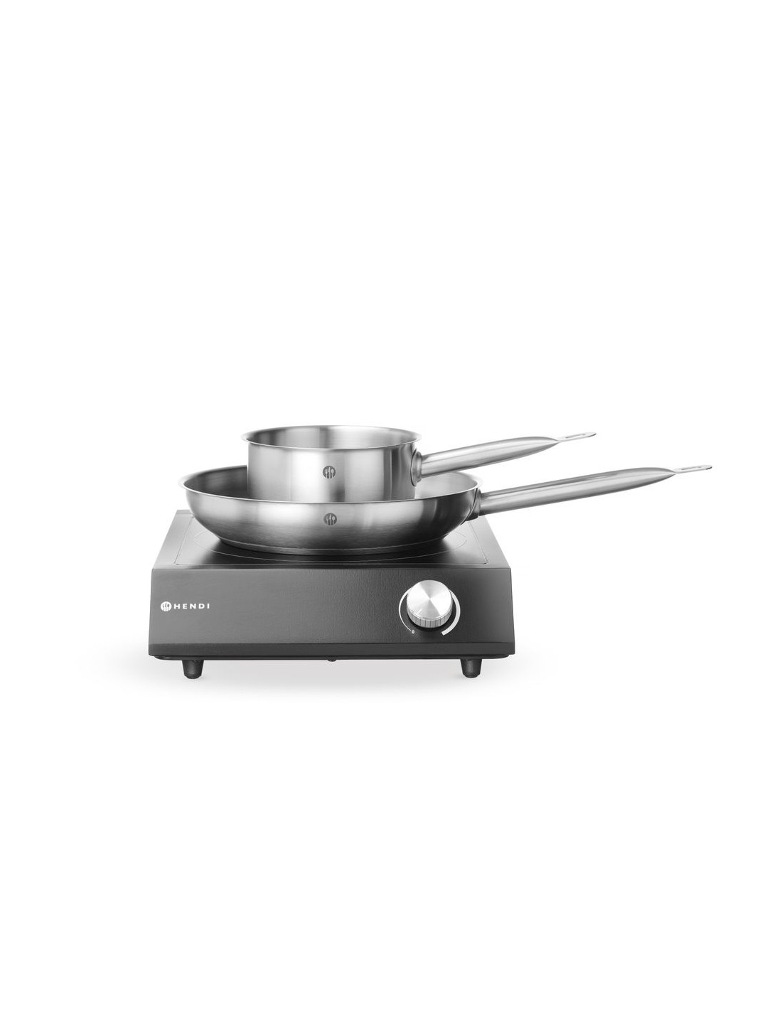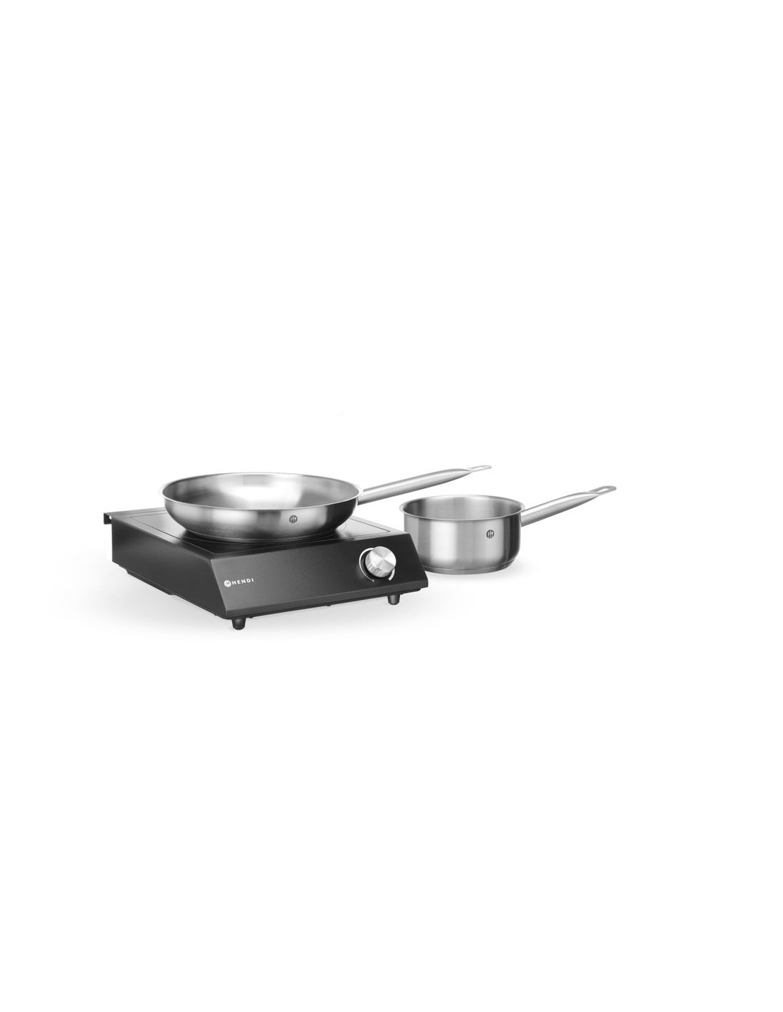 HENDI-setet: Induktionsspis 3500W + kastrull + stekpanna lovar utmärkta och snabba resultat samtidigt som det är energieffektivt. Denna induktionsspis erbjuder uppvärmning i en kompakt och elegant design, då dess kokyta är tillverkad av glas och dess hölje av pulverlackerat stål, vilket garanterar hållbarhet och elegans. Setet innehåller en kastrull och en stekpanna vilket gör detta set till det kompletta och praktiska startsetet för varje kök.