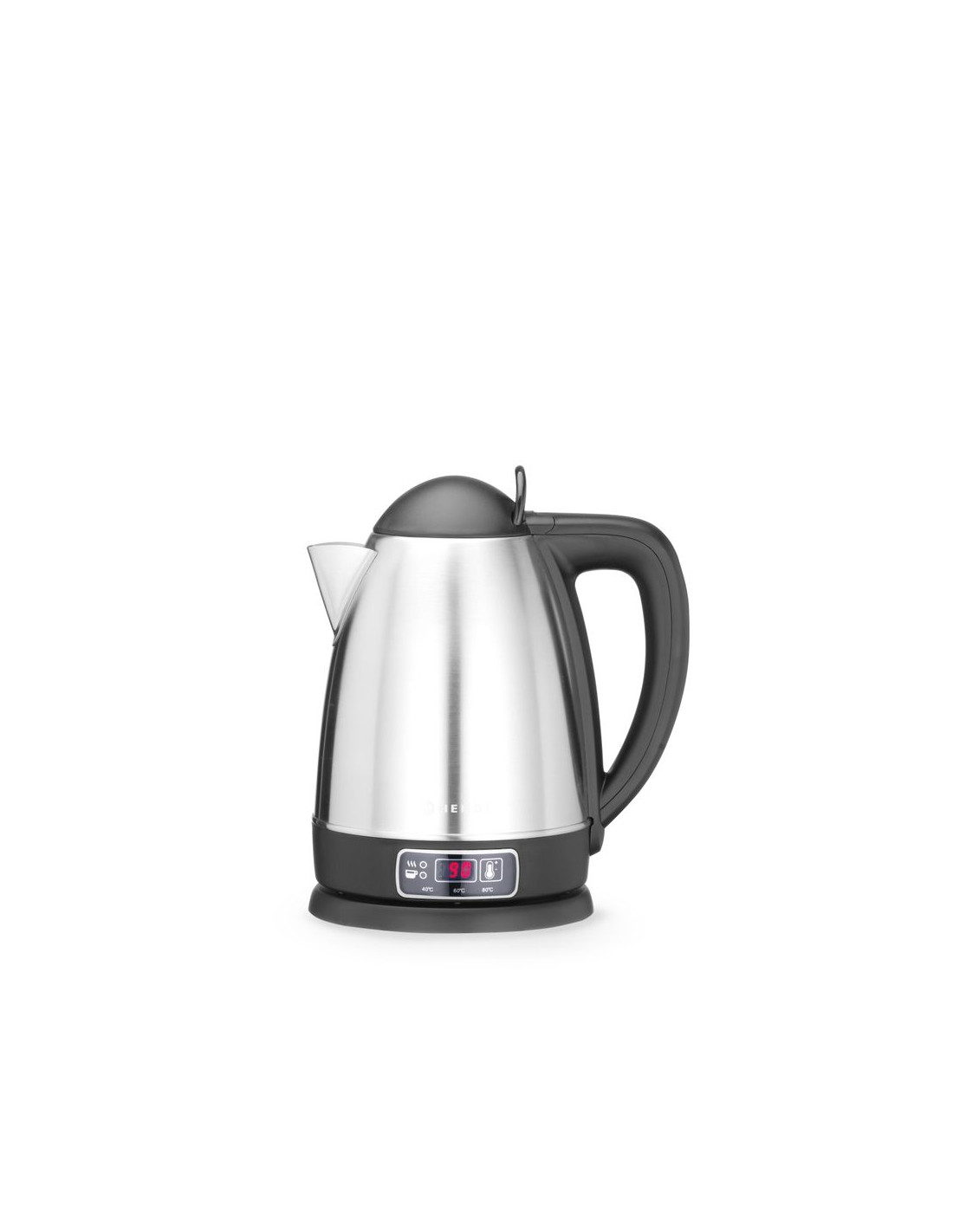 För tillredning av drycker med angivna bryggförhållanden, såsom grönt te, vitt te eller yerba mate. Hölje och värmare i rostfritt stål (18/8). Handtag, lock och bas i polypropylen. Temperaturreglering och temperaturhållning – vatten kan värmas till en av dessa temperaturer: 40 °C, 60 °C, 80 °C, 100 °C. Värmare placerad under botten, skyddad mot kalkavlagringar. Kontrollpanel med digital display. Termostatindikator. Intern indikator för maximal vattennivå. Automatisk avstängningsfunktion efter att vattnet kokat. Dubbelt skydd mot att slås på en tom vattenkokare. Vattenkokaren kan roteras – 360 ° bas. VARNING: Endast avsedd för kokning av vatten, kokning av andra vätskor kan skada vattenkokaren.
