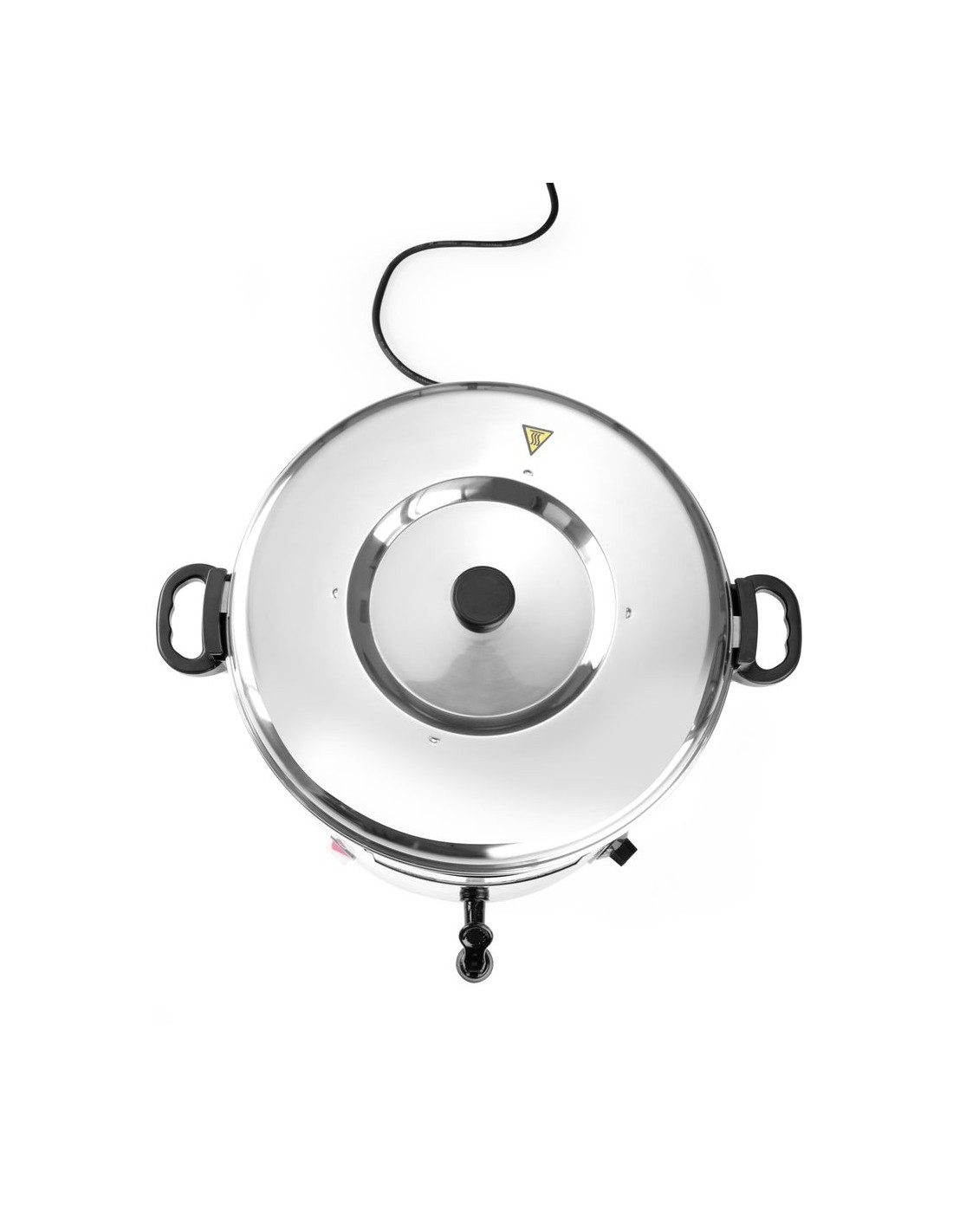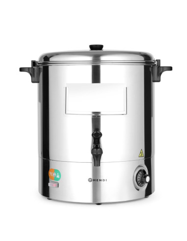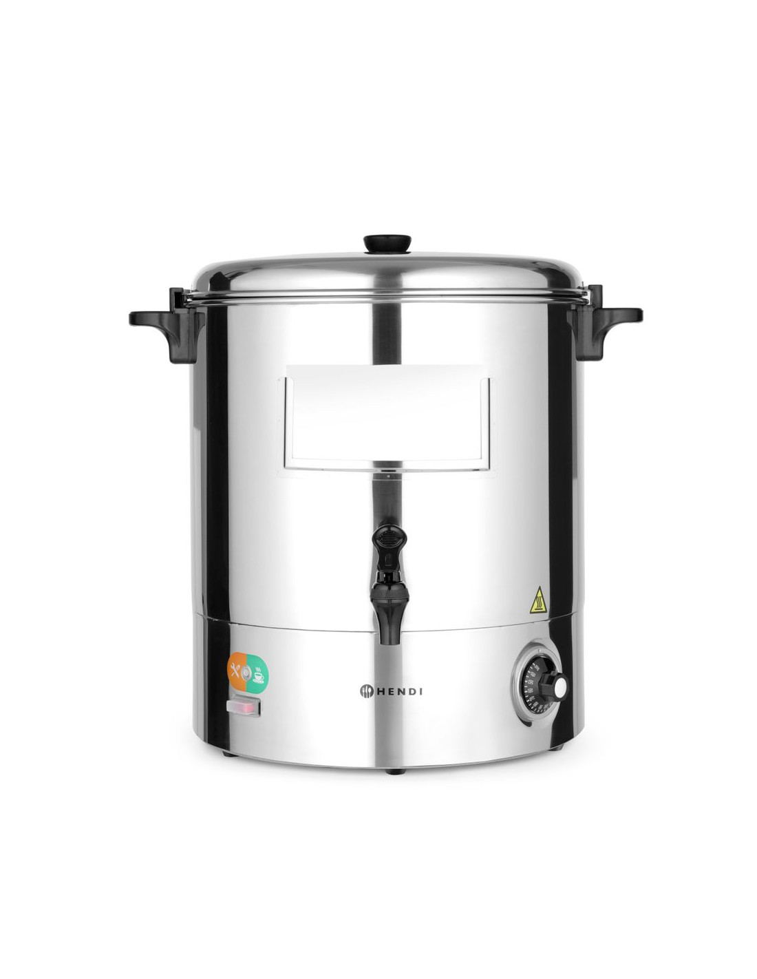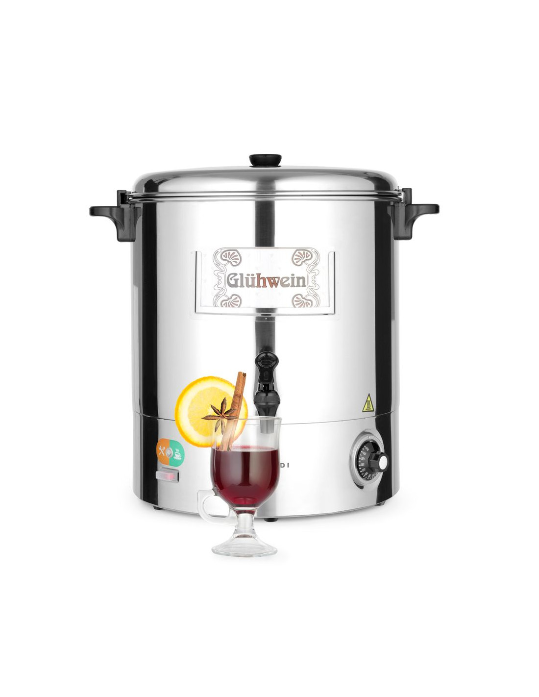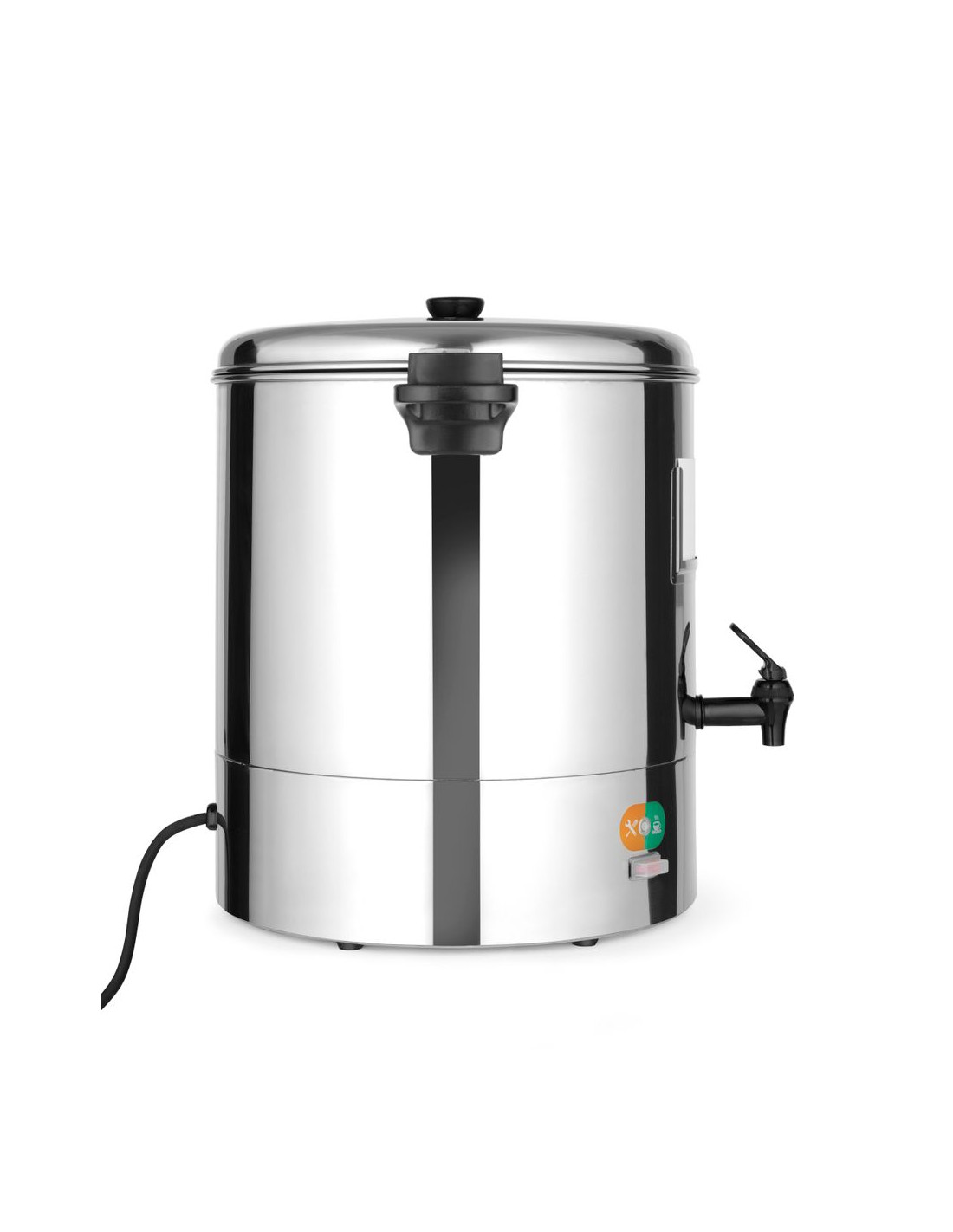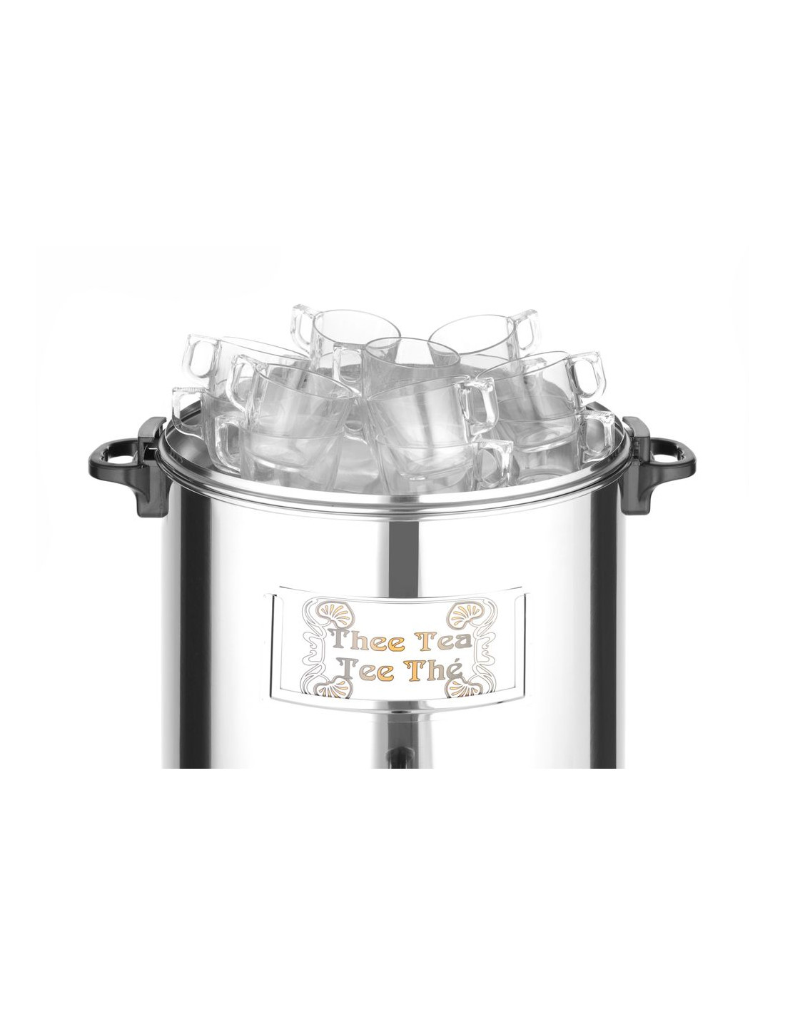 Enkelväggig. Med droppfri kran i polypropylen. Utrustad med automatisk återställning. Fungerar automatiskt och håller dryckerna vid serveringstemperatur. Rengöringsindikator. Temperaturjusterbar upp till 110 °C. Ej lämplig för varm choklad. Lämplig för glögg. Vändbart lock kan användas som bricka och för att hålla glas/koppar varma.
