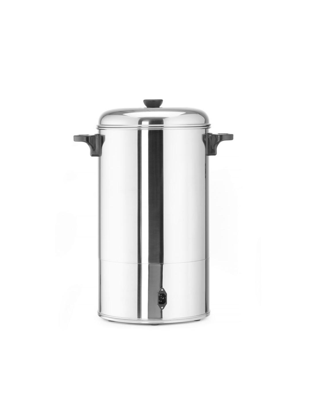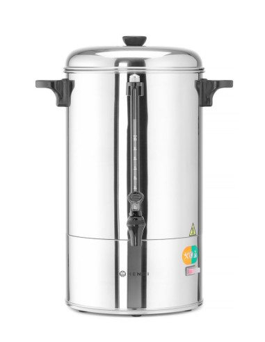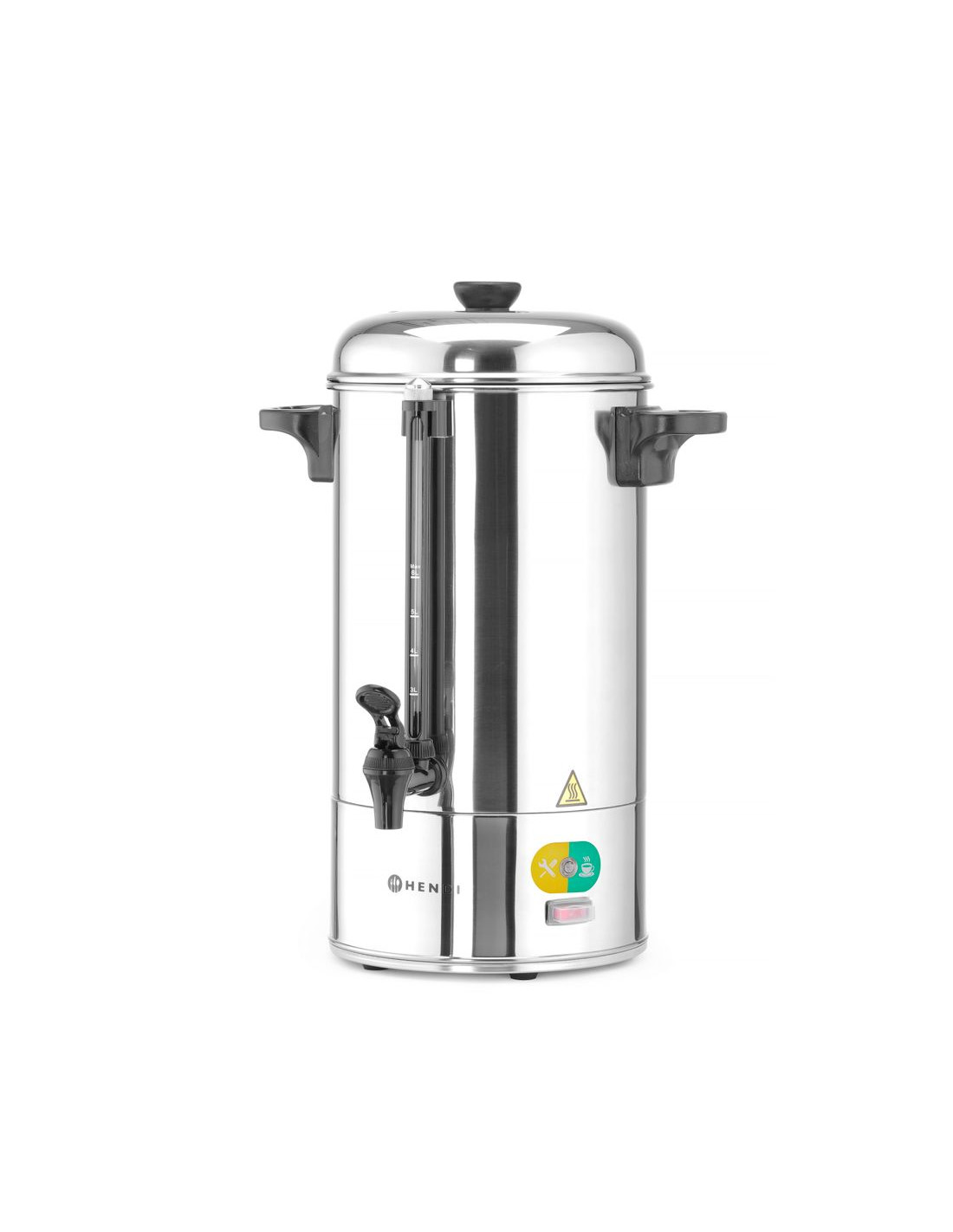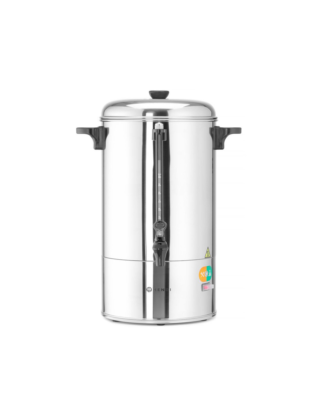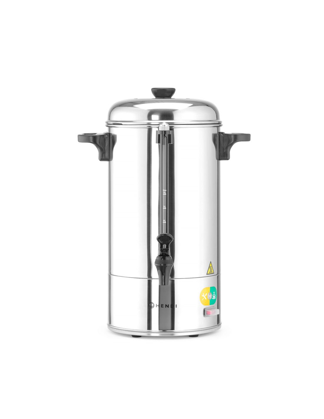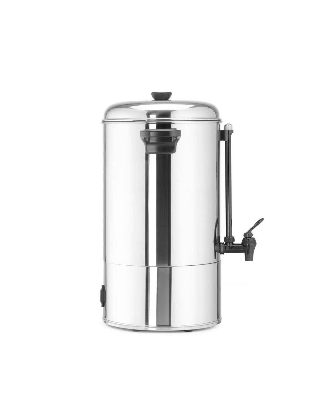 Enkelväggig kropp i rostfritt stål. Filterpannan har inbyggt filter för grovmalet kaffe, filterpapper behövs inte. Perkolatorn håller kaffet vid serveringstemperatur efter bryggning. Med graderat glas, droppfri kran och utrustad med automatisk återställning. Indikatorlampan signalerar slutet av bryggningsprocessen och om avkalkning behövs.