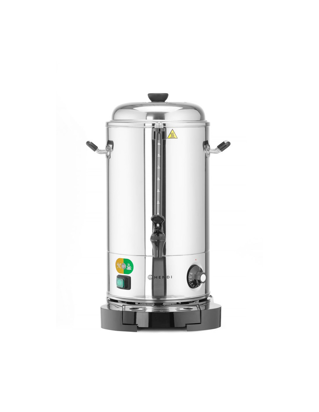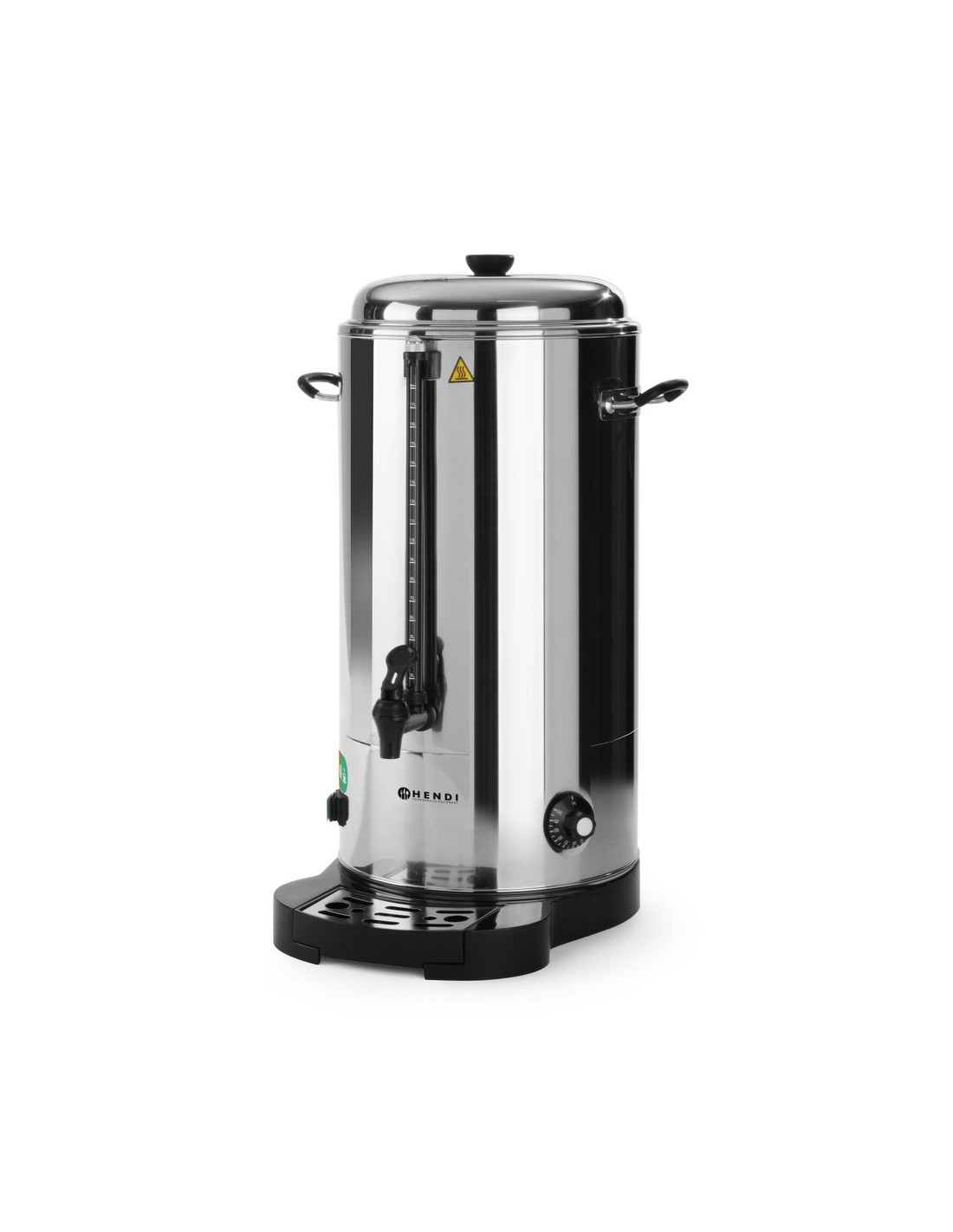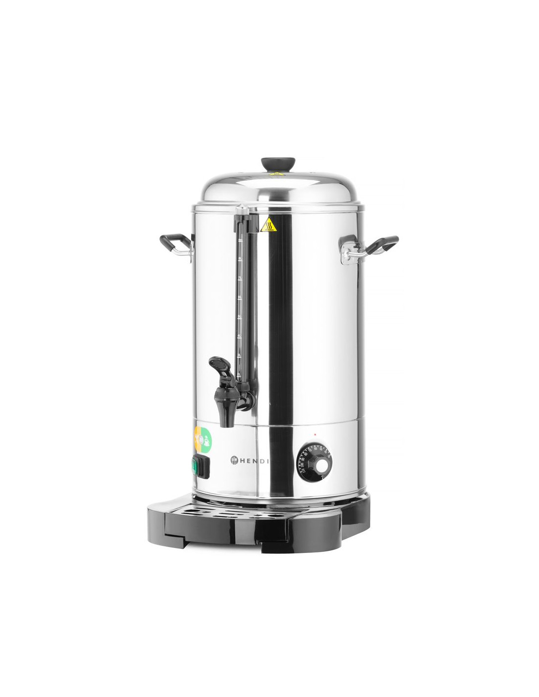 HENDI varmdryckskokare med dubbelvägg minskar värmeförlusten och förbättrar temperaturhållningen. Den justerbara termostaten möjliggör exakt kontroll, medan det underhållsfria värmeelementet och de avtagbara komponenterna underlättar rengöringen. Ytterligare funktioner som silikonhandtag, droppfri kran, avkalkningsindikator och vattenmätare i glas säkerställer säker och effektiv daglig drift.
