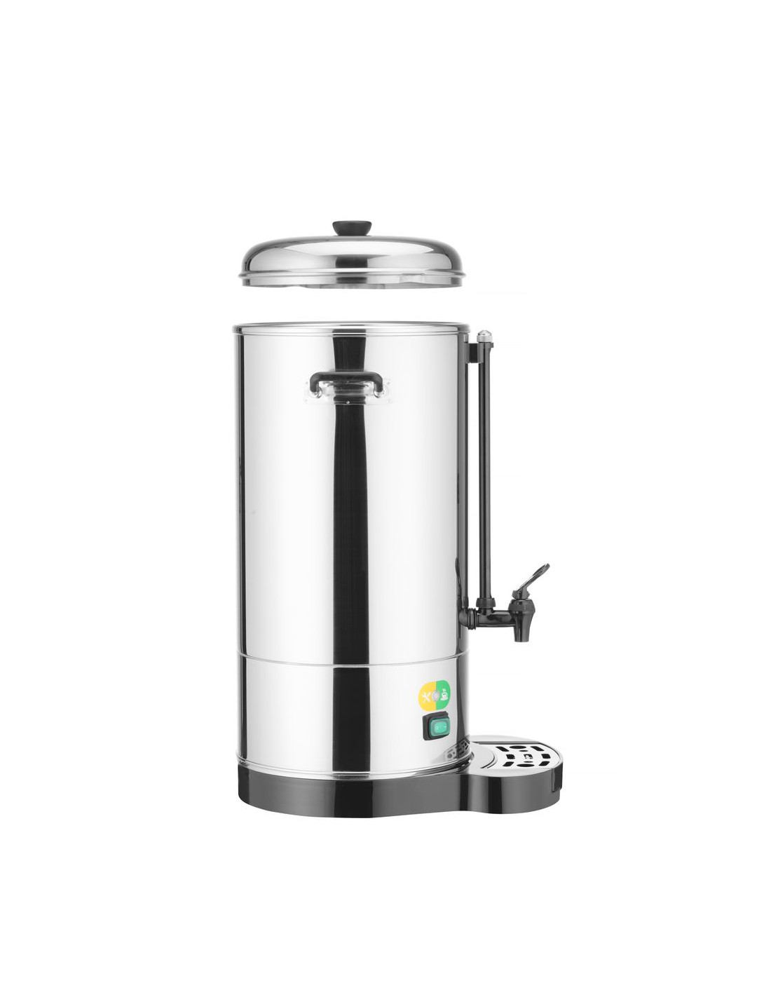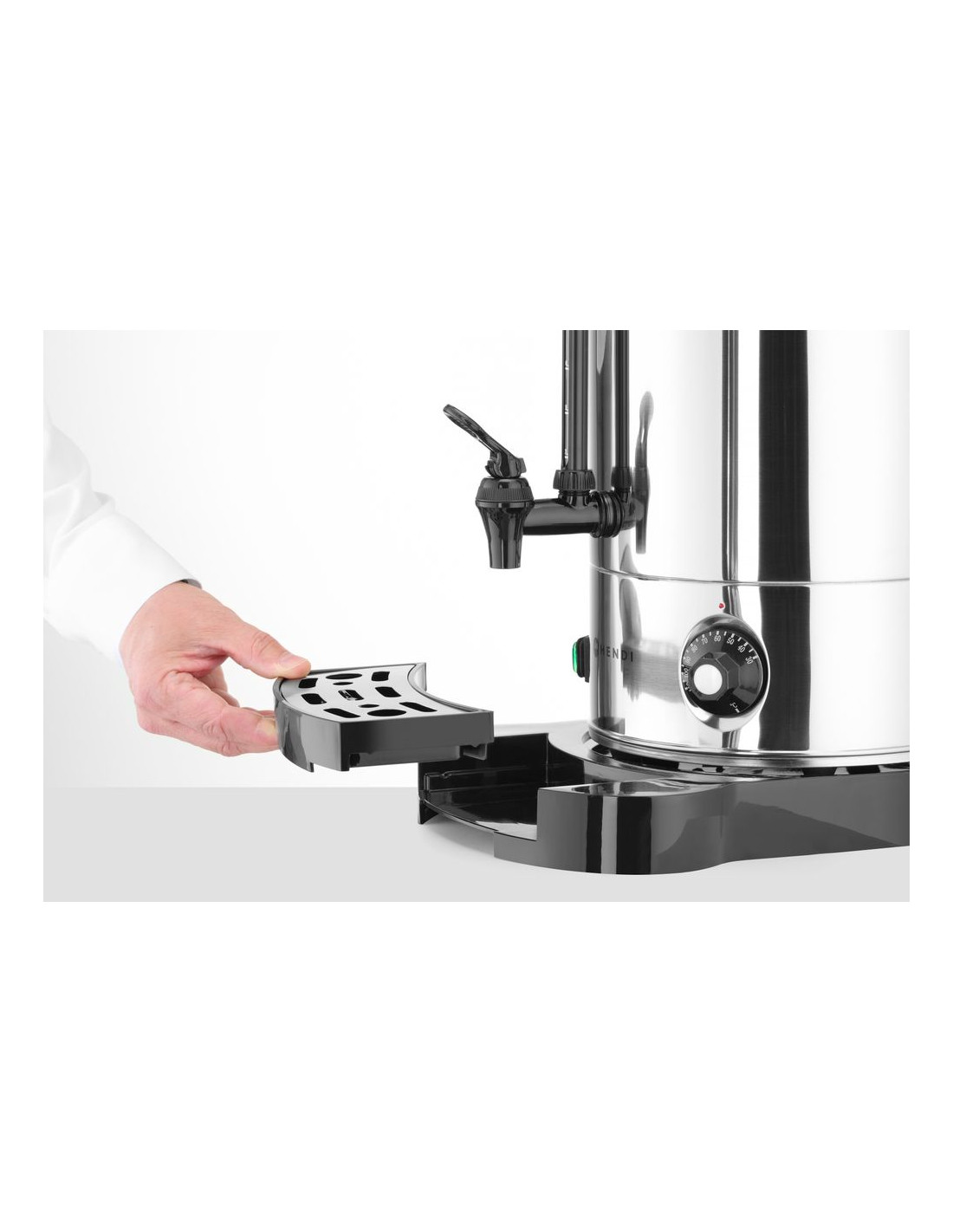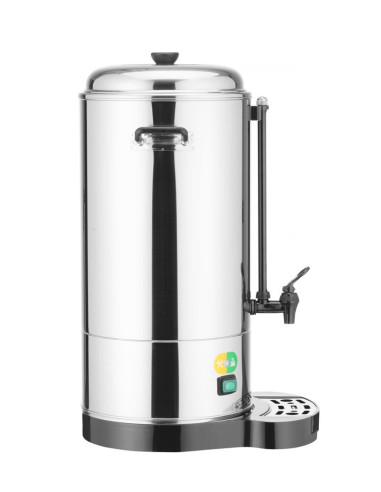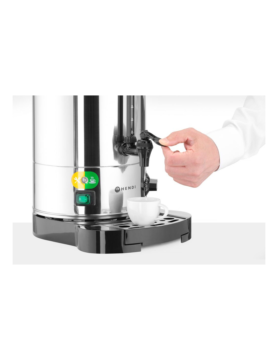 HENDI varmdryckskokare med dubbelvägg minskar värmeförlusten och förbättrar temperaturhållningen. Den justerbara termostaten möjliggör exakt kontroll, medan det underhållsfria värmeelementet och de avtagbara komponenterna underlättar rengöringen. Ytterligare funktioner som silikonhandtag, droppfri kran, avkalkningsindikator och vattenmätare i glas säkerställer säker och effektiv daglig drift.