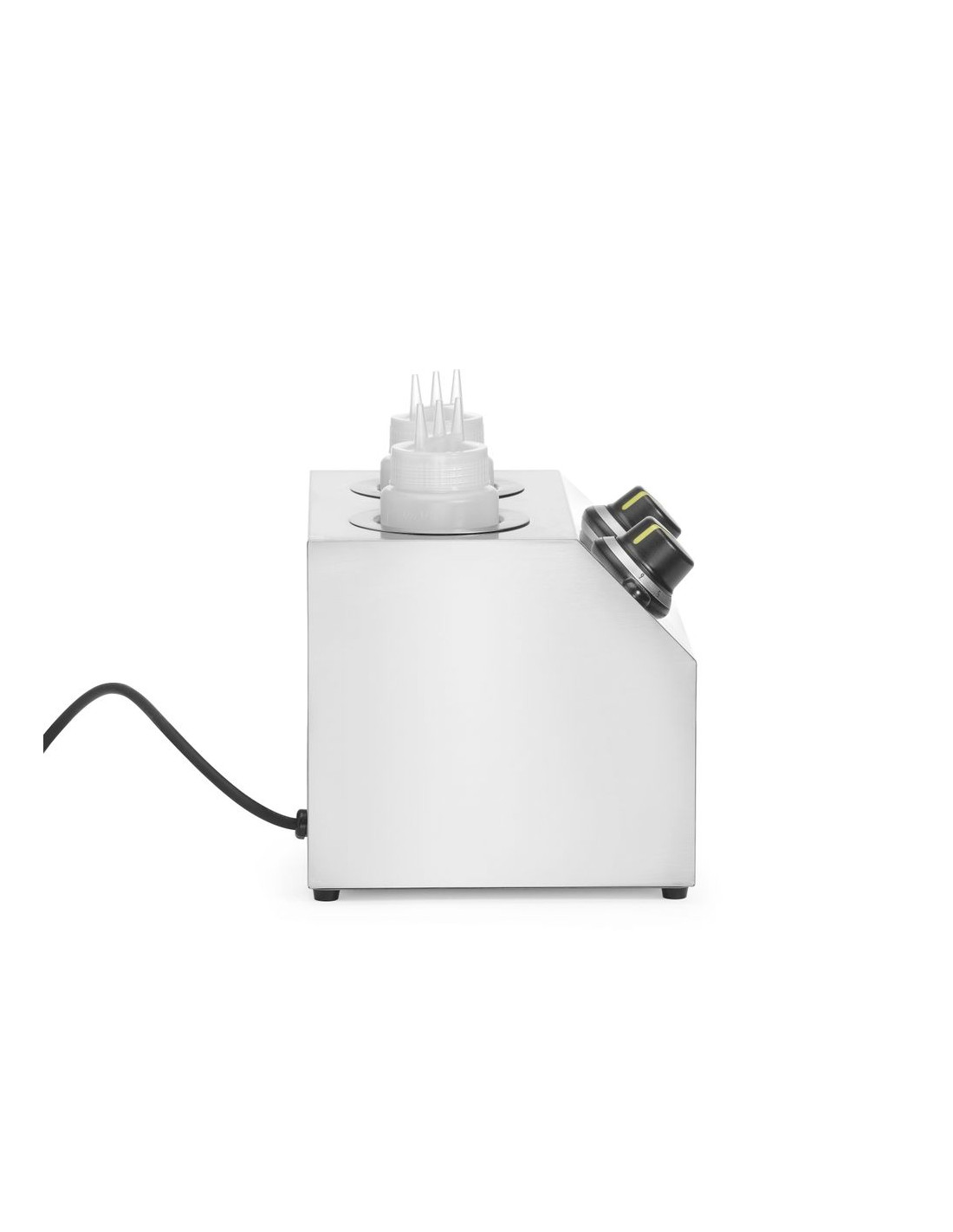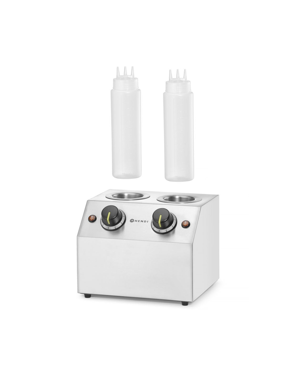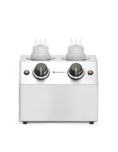 HENDI såsvärmare är det perfekta verktyget för att hålla chokladsås och andra varma såser vid rätt temperatur för enkel hällning över glass, crêpes och andra desserter. Placera bara flaskan i värmaren så värms innehållet upp till den inställda temperaturen. Ändra temperaturen för att göra chokladsåsen tunnare eller tjockare.