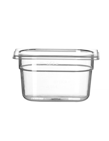 Högkvalitativa professionella Gastronorm-behållare tillverkade av transparent polykarbonat. Absorberar inte lukt eller smak. Temperaturbeständig från -40 °C till 110 °C.