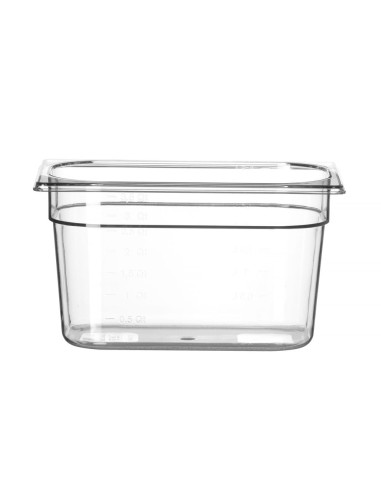 Högkvalitativa professionella Gastronorm-behållare tillverkade av transparent polykarbonat. Absorberar inte lukt eller smak. Temperaturbeständig från -40 °C till 110 °C.