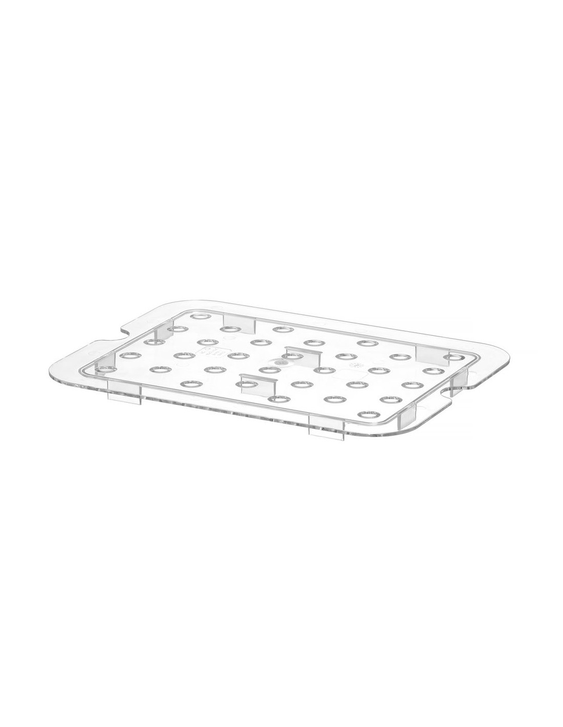 Hendi Profi Line GN-behållarens perforerade dropphylla i polykarbonat är ett användbart tillbehör som effektivt förhindrar ansamling av vätskor under mat som förvaras i GN-behållare.