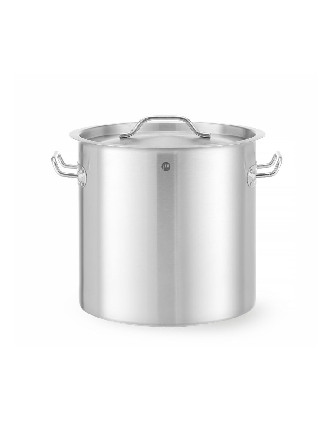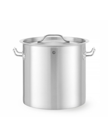 HENDI grytpanna hög – med lock har en sandwichliknande botten som kombinerar snabb och jämn värmefördelning med induktionskompatibilitet. Den satinerade kroppen har nitade handtag i rostfritt stål som håller dem svala, medan den sömlösa botten passar alla värmekällor. Levereras med ett lock med ångutsläppshål för kontrollerad tillagning.
