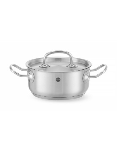 HENDI gryta låg – med lock, erbjuder jämn värmefördelning för konsekventa matlagningsresultat över alla värmekällor, inklusive induktion. Locket har ångutsläppshål, medan handtagen förblir svala nog att vidröra och satinfinishen ger ett elegant och hållbart utseende.