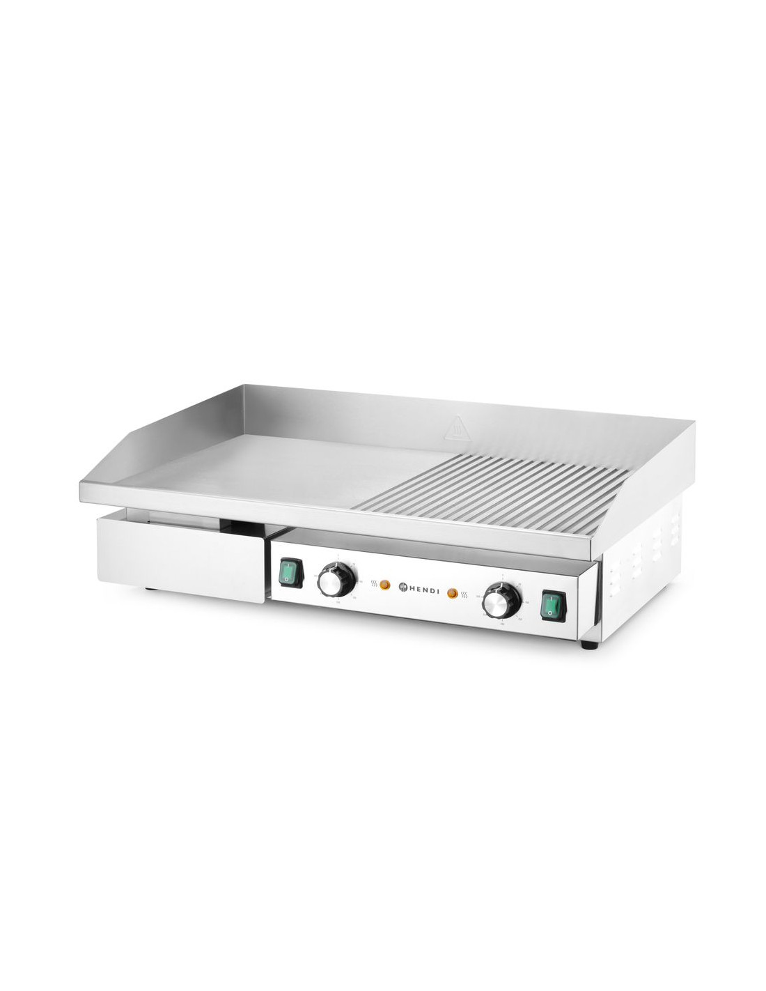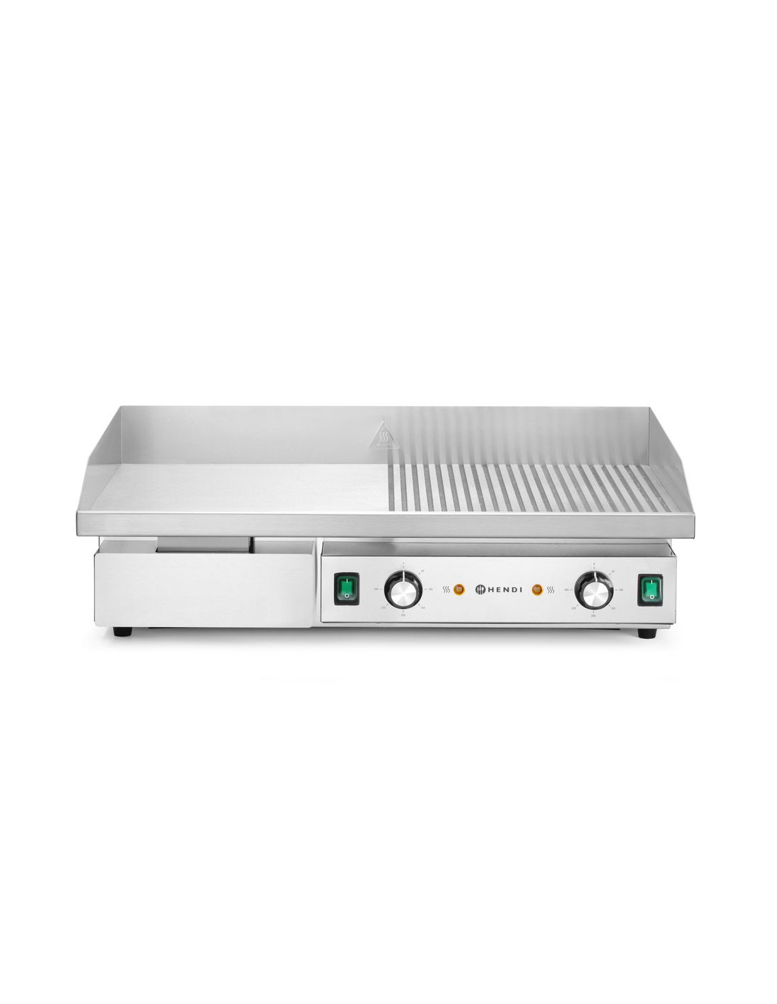 Tänk dig en enda apparat som låter dig steka möra ägg och grilla biffar med aptitretande strimlor samtidigt, var och en vid sin ideala temperatur. HENDI SMART grillplattan, halv slät och halv räfflad, är svaret på behoven inom modern gastronomi, där mångsidighet, effektivitet och platsbesparing är viktigt. Tack vare två oberoende värmezoner och kraftfull effekt är apparaten redo för intensivt arbete under alla förhållanden, vilket ger dig full kontroll över grillprocessen. Det är en komplett position som kommer att revolutionera din köksupplevelse. Maximera funktionen hos din meny och optimera din arbetsyta. Investera i en HENDI SMART grillplatta och upptäck en ny dimension av flexibilitet inom professionell grillning!