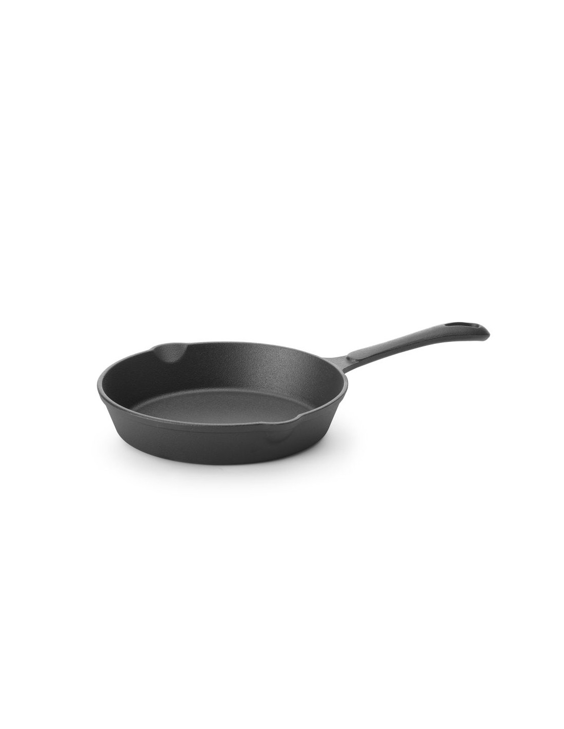 HENDI gjutjärnspanna erbjuder utmärkt värmehållning och sprider värmen jämnt, vilket säkerställer perfekt tillagade ingredienser. Efter korrekt kryddning blir gjutjärnet non-stick. Det är ett fantastiskt val för att tillaga kött som behöver stekas ordentligt. Två pipar, det stora handtaget och ett upphängningshål gör användningen av stekpannan ännu bekvämare.