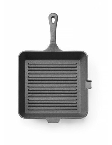 HENDI gjutjärnsgrillpanna erbjuder utmärkt värmehållning och sprider värmen jämnt, vilket säkerställer perfekt tillagade ingredienser. Det är ett utmärkt, traditionellt val för att grilla kött, särskilt biffar eller kotletter.