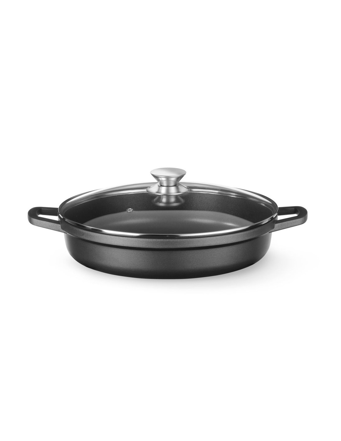 HENDI-grytan med lock är tillverkad av slitstarkt pressgjuten aluminium, vilket säkerställer att den tål krävande användning i kök med hög belastning. Dess utmärkta värmefördelning garanterar jämn tillagning och den kan användas på gas-, induktions-, elektriska och keramikhällar. Non-stick-beläggningen gör att maten enkelt lossnar och rengöringen blir enkel, medan locket hjälper till att bevara fukt och smak.