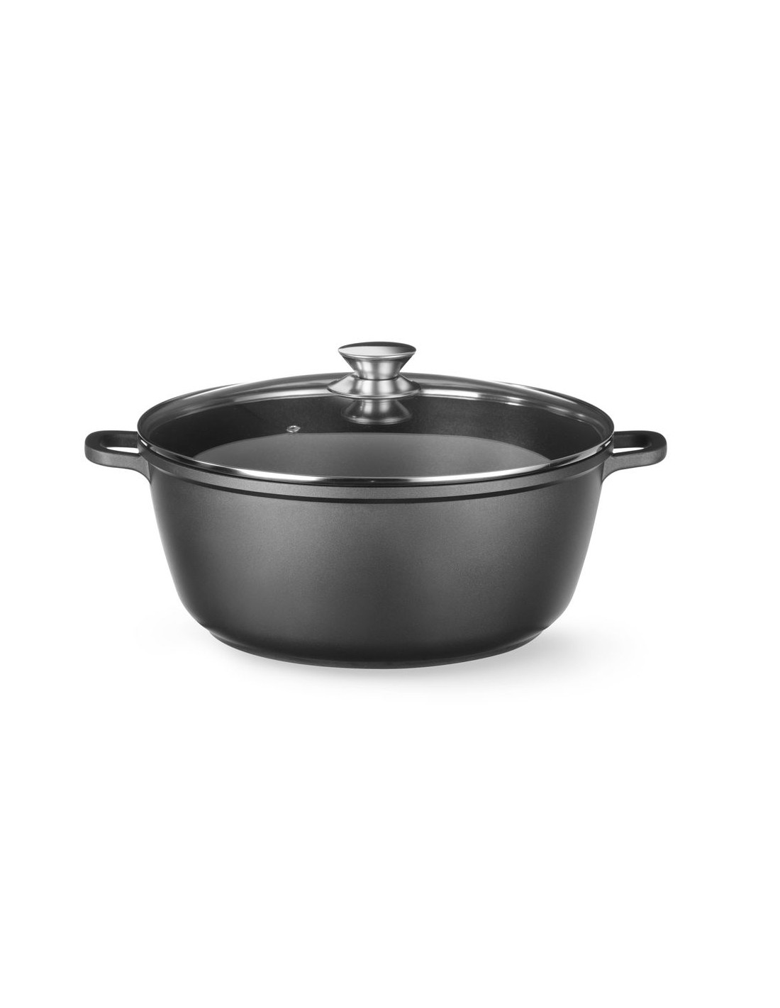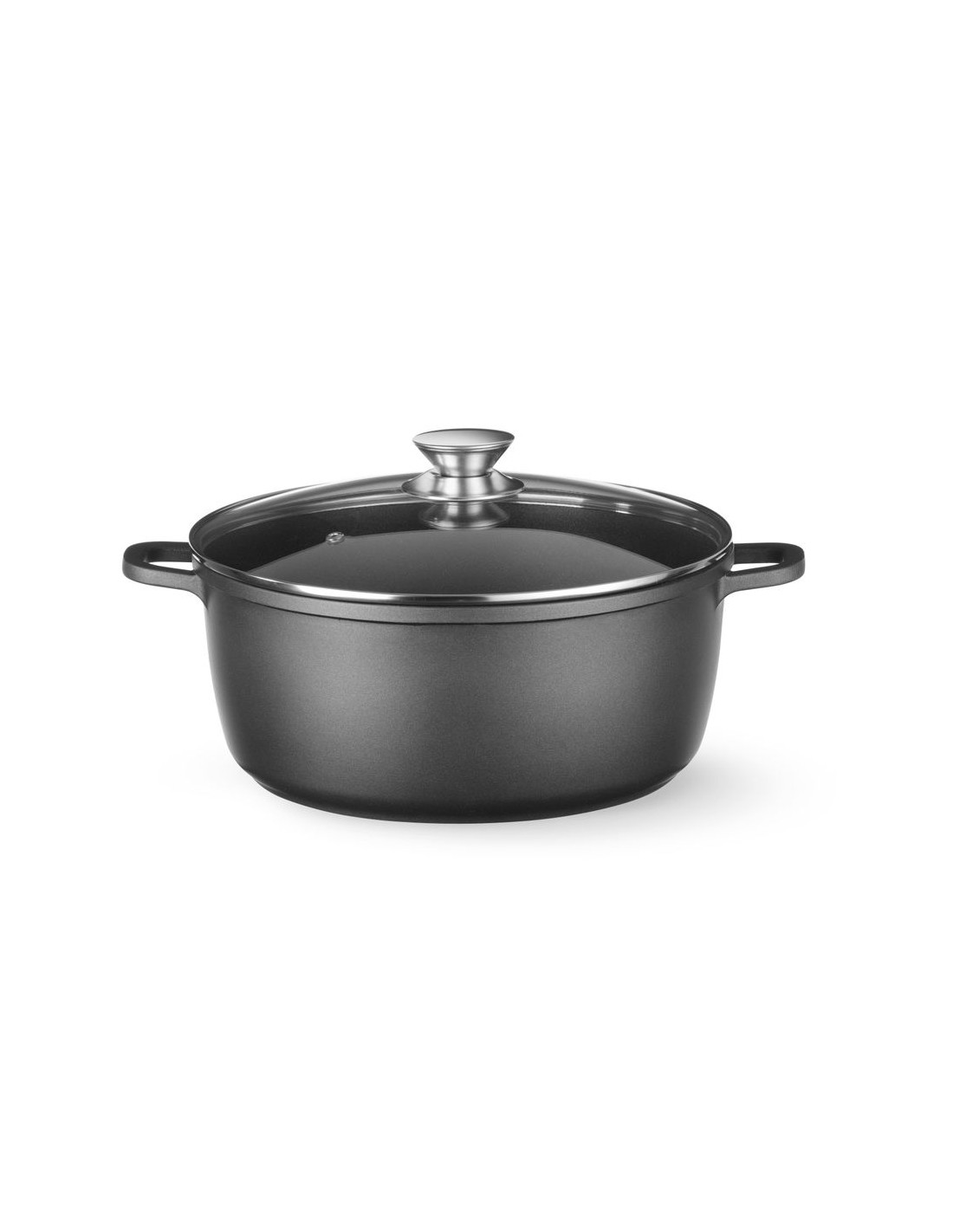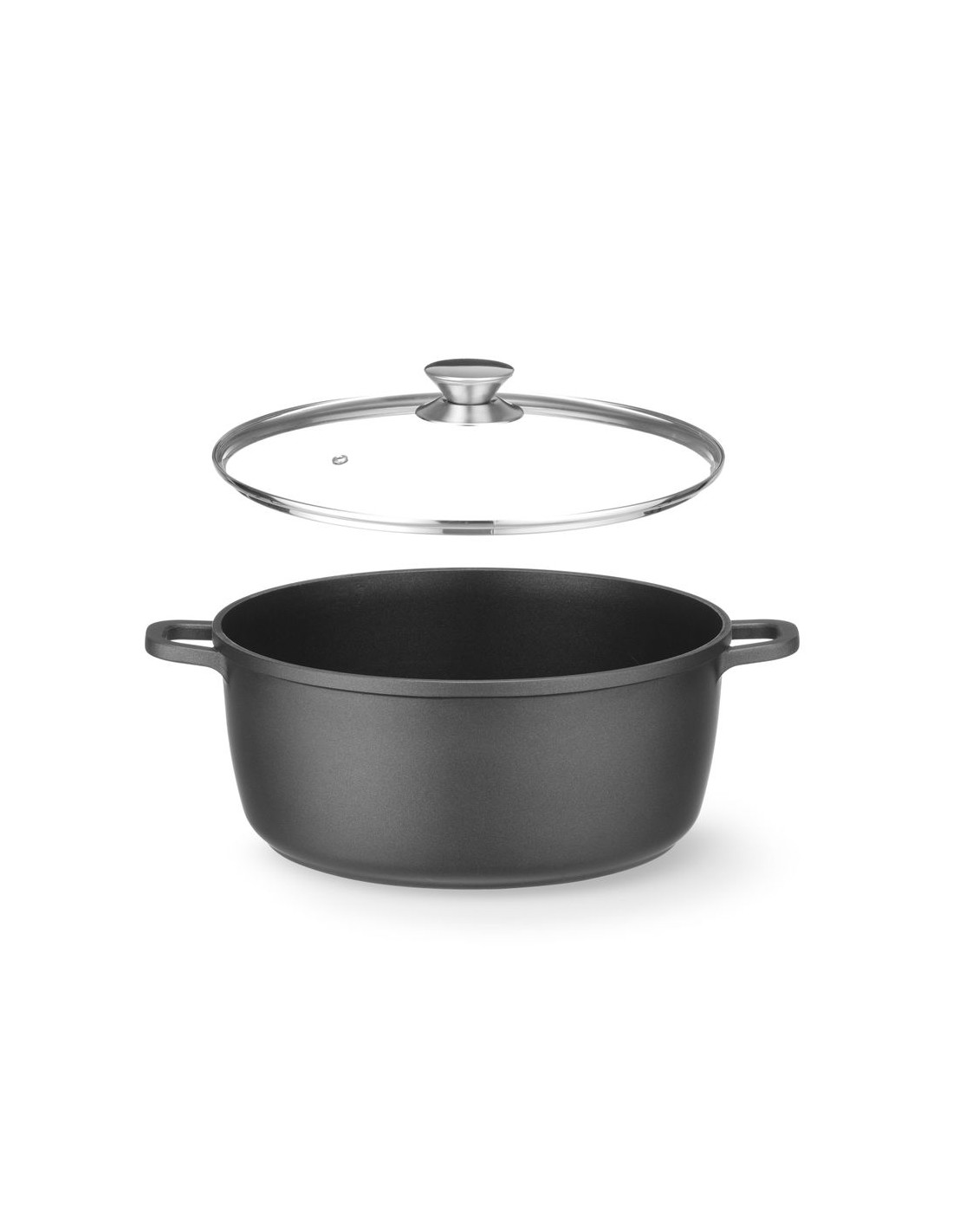 HENDI-grytan med lock är tillverkad av slitstarkt pressgjuten aluminium, vilket säkerställer att den tål krävande användning i kök med hög belastning. Dess utmärkta värmefördelning garanterar jämn tillagning och den kan användas på gas-, induktions-, elektriska och keramikhällar. Non-stick-beläggningen gör att maten enkelt lossnar och rengöringen blir enkel, medan locket hjälper till att bevara fukt och smak.