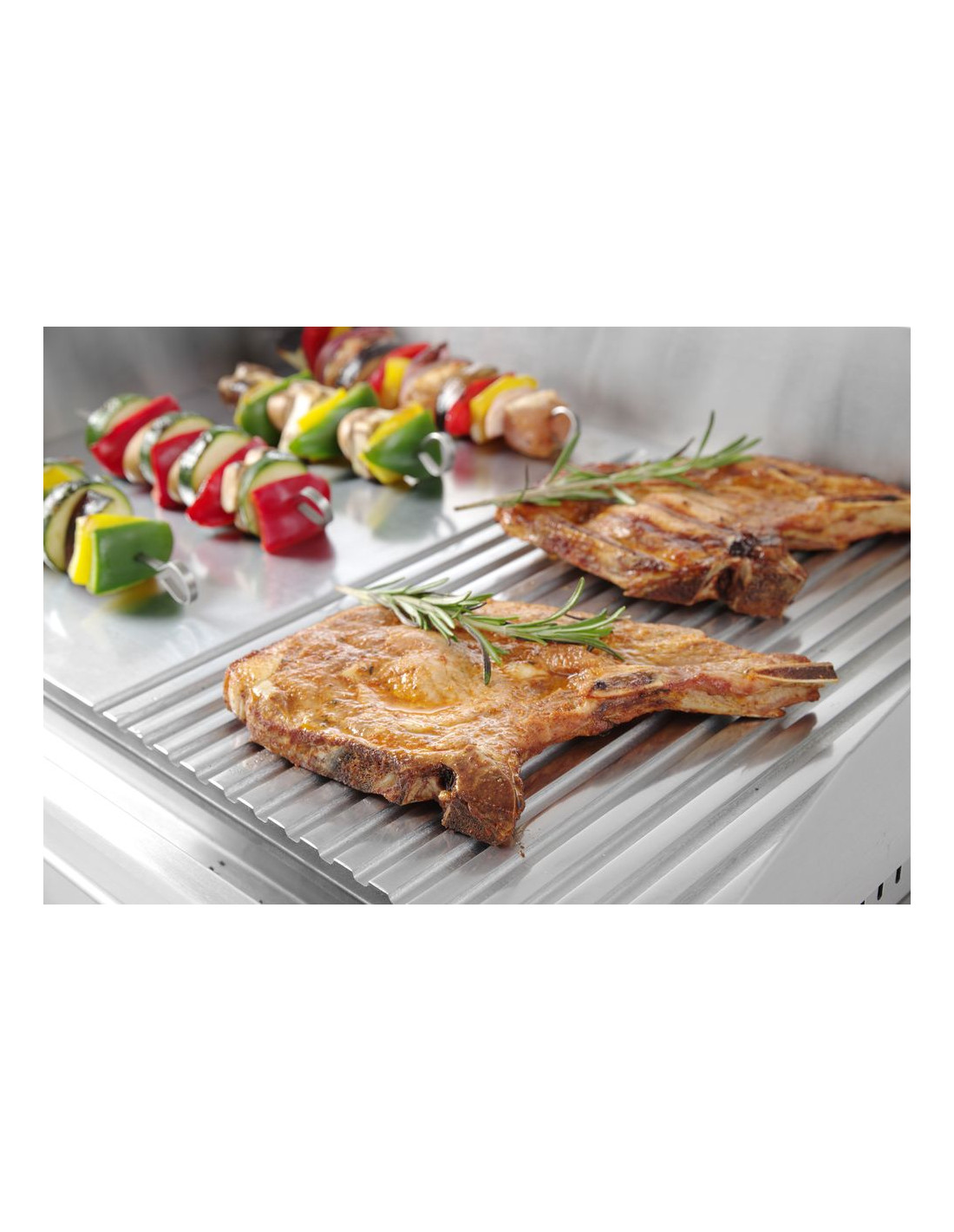 Grillyta: 518x330 mm, vänster 259 mm slät och höger 259 mm ribbad.