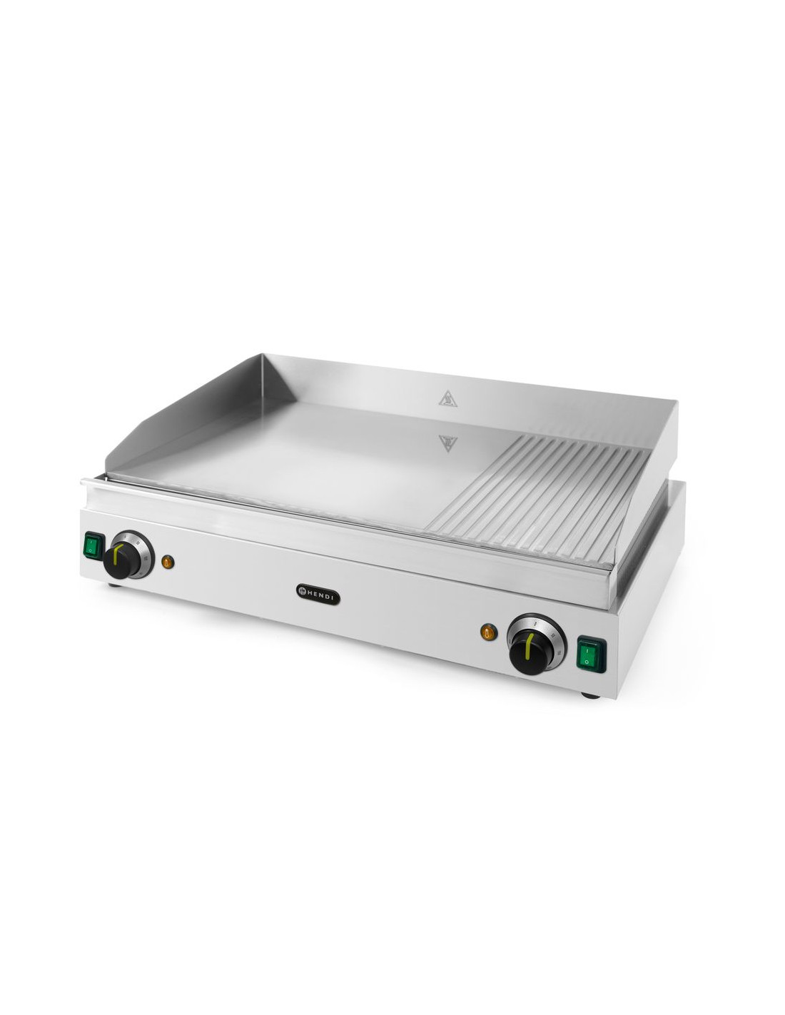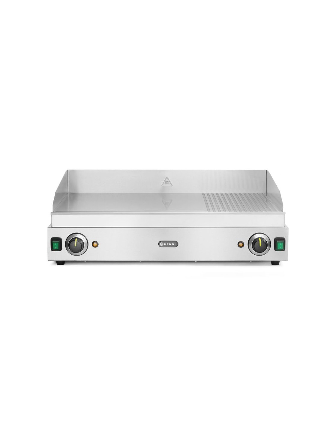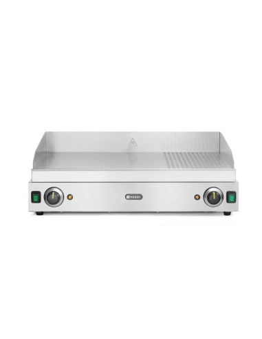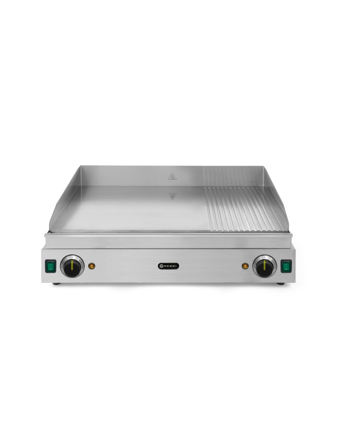 oberoende arbetsytor, 2 värmeindikatorlampor. Stekyta 688x410 mm, vänster 462 mm slät och höger 226 mm ribbad.