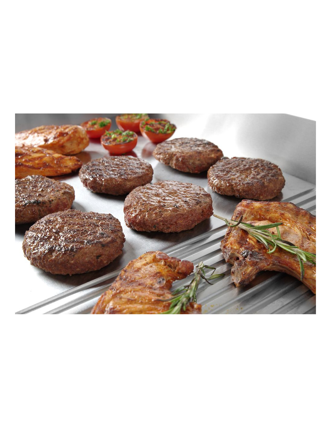 Hölje i rostfritt stål. Den hårdförkromade ytan (9 mm platta) underlättar rengöring. Med uttagbar droppbricka och höga stänkskydd. Steglös termostat justerbar upp till 300 °C. Överhettningsskydd. Lämplig för kontinuerlig användning. Strömbrytare med integrerad indikationslampa. Halkfria fötter.