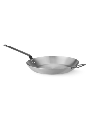 Tillverkad av kolstål. Ergonomiskt handtag av kolstål med upphängningshål. Lämplig för olika värmekällor inklusive induktion, gas, el och keramik. Ej diskmaskinssäker. Utmärkt värmeledningsförmåga. Solid konstruktion, mycket lång livslängd. Obs: Måste kryddas före användning.