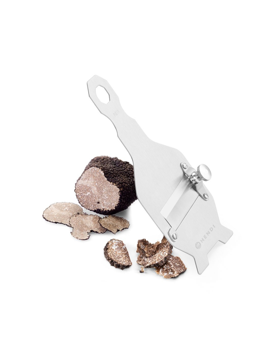 Tryffelskäraren från Hendi är ett oumbärligt verktyg i alla professionella kök. Skäraren är utformad för att skära perfekt tunna skivor av tryffel eller andra svampar. Med sitt justerbara blad kan den också användas för att skiva och riva grönsaker, ost och choklad.