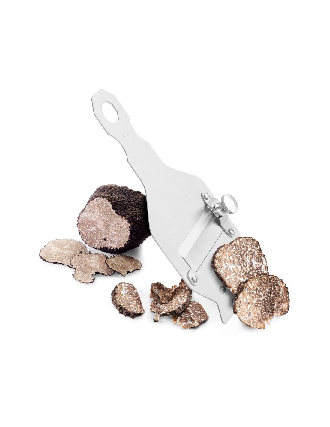 Det perfekta verktyget för att skära tunna skivor av tryffel. Blad tillverkat av rostfritt stål – 55HRC hårdhet. Bladhölje tillverkat av rostfritt stål. Skivtjockleken är justerbar med en skruv från 0,2 till 3 mm.