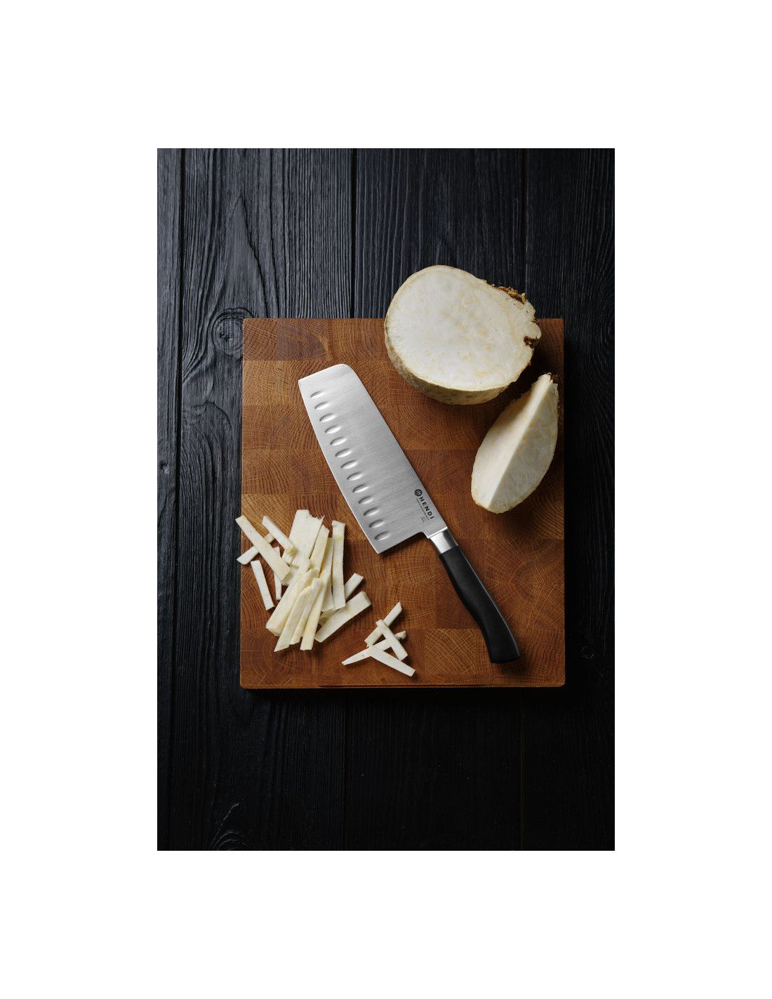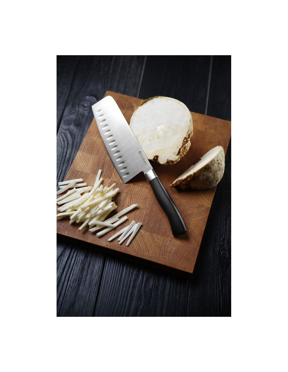 Alla knivar är precisionssmidda, varmsmidda från ett enda ämne av tyskt rostfritt stål med hög kolhalt. Det specialiserade kirurgiska legeringsstålet krom-molybden-vanadin X50CrMoV15 garanterar följande egenskaper: - rakbladsvass - långvarig skäregg - lätt restaurerbar egg - hög fläckbeständighet. Cirka 50 stora tillverkningssteg krävs för att producera varje kniv. Traditionella färdigheter och precisionsmaskiner fortsätter slipnings- och poleringsoperationerna tills den slutliga skäreggen appliceras i den mest lämpliga bladvinkeln. Handtaget kombinerar balans, säkerhet, tyngd och kontroll med ett exklusivt utseende. Varje kniv är individuellt förpackad i en PET-blisterförpackning.