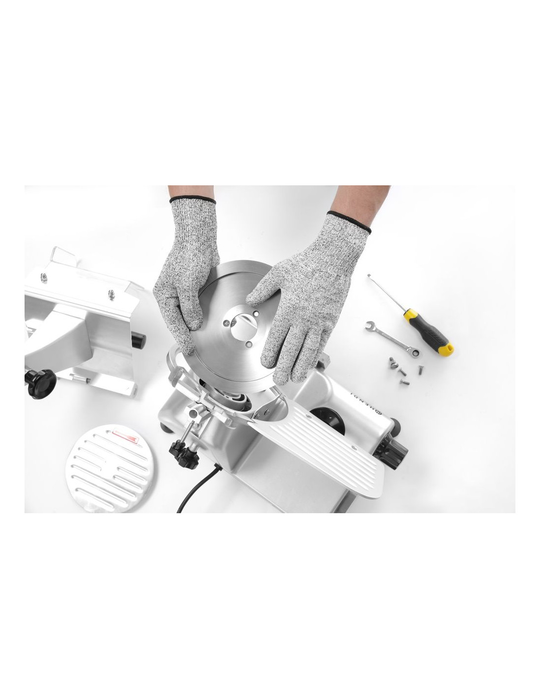 - Erbjuder skydd vid hantering och byte av vassa knivar i skärutrustning.