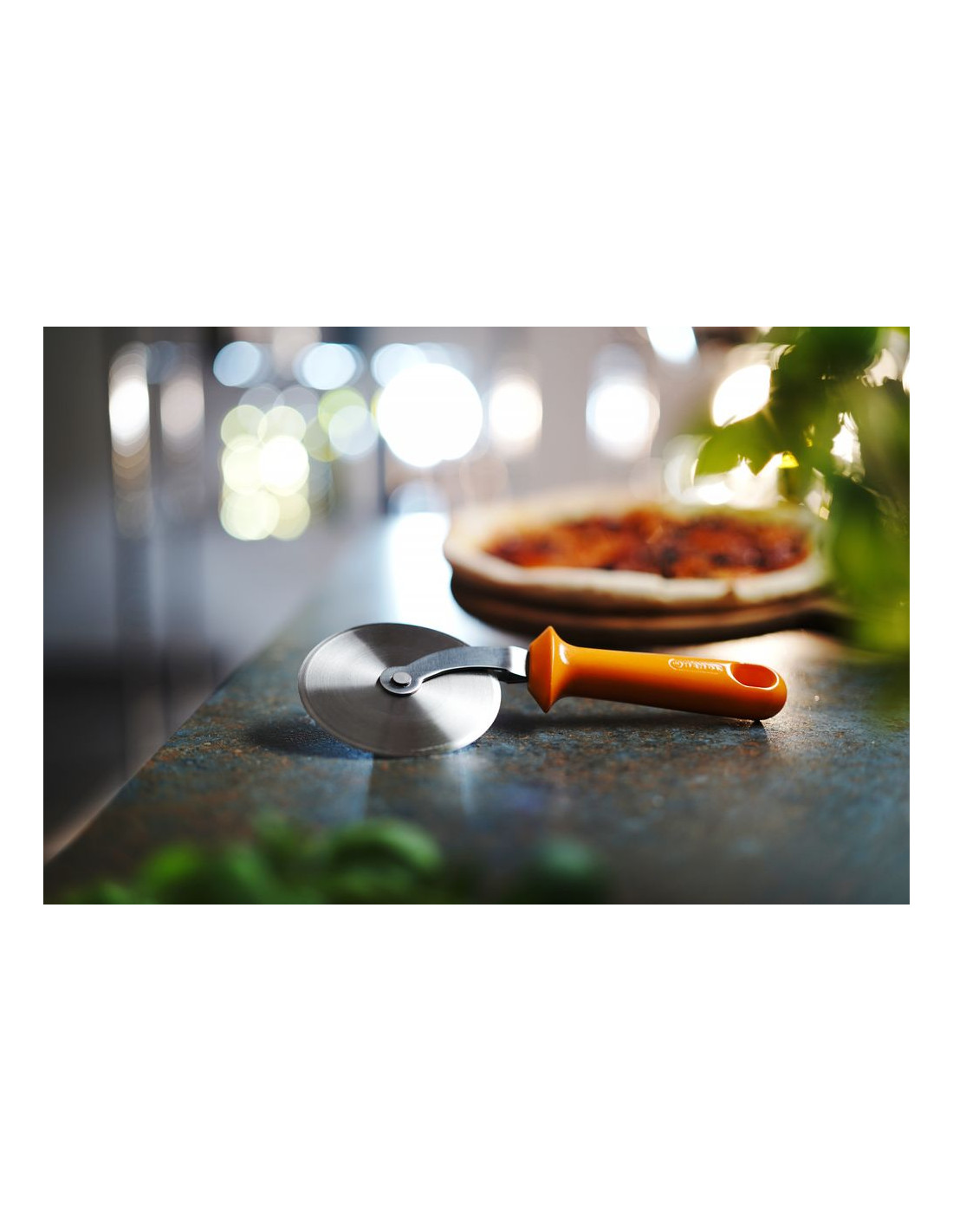 HENDI PIZZER är ett professionellt, kraftigt verktyg designat av den välkände holländska designern Robert Bronwasser – det är funktionellt, ergonomiskt och snyggt. PIZZER har ett högkvalitativt, stort och tjockt blad som möjliggör smidig skärning av alla typer av pizza. Oavsett om det är en klassisk tunn botten eller en tjock panna, säkerställer HENDI PIZZER snabb och enkel skärning. Produkten väger hela 325 gram, vilket indikerar dess styrka och höga kvalitet. Handtaget är tillverkat av polypropen, medan bladet och andra komponenter är tillverkade av pålitligt 18/8 rostfritt stål – tillsammans bildar de en solid konstruktion med ett extremt effektivt blad som klarar intensiv användning. Bladet är säkrat med starka, platta nitar – till skillnad från traditionella skruvar ger nitar högre hygienstandard eftersom de inte samlar rester från de skivade produkterna. Skäraren är lätt böjd och perfekt balanserad, vilket resulterar i en mer ergonomisk användning. Handtaget har ett upphängningshål för bekväm förvaring genom att hänga verktyget på väggen. Tål maskindisk – vilket garanterar enkel rengöring.