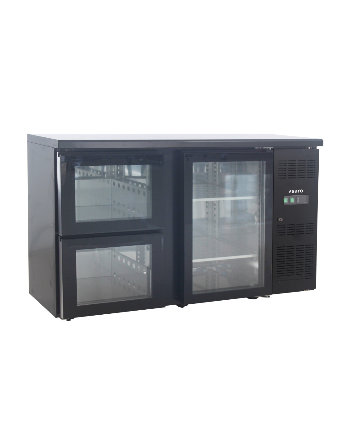 - 1 glasdörr (ej vändbart gångjärn) och 2 lådor med glas