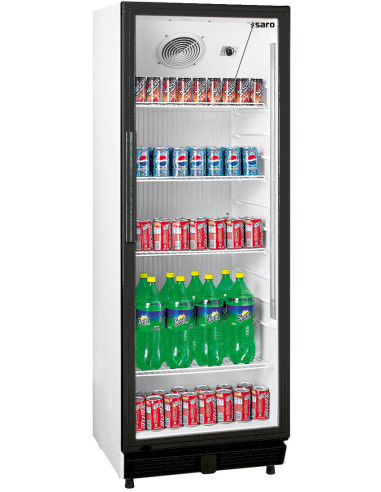 Material: (hölje) stålemalj, vit; (invändigt) plast, vit, (glasdörrkarm) plast, svart